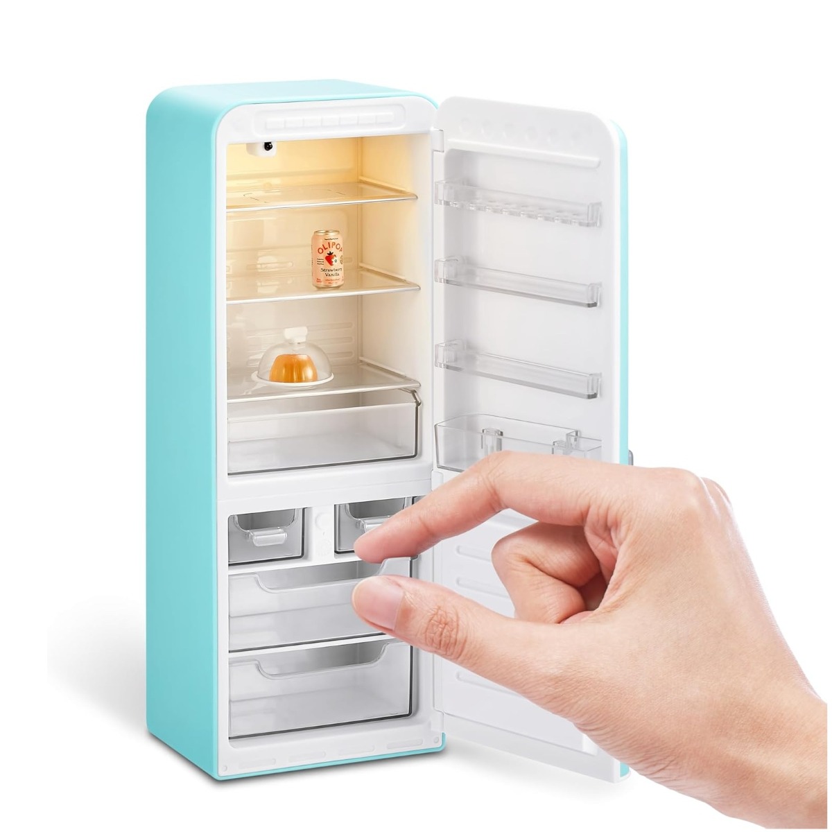 Reumple-ti mini-frigiderul cu stil! Inspirat de trendul viral al organizarii frigiderului, setul Mini Brands Fill The Fridge iti ofera tot ce ai nevoie pentru a crea propria colectie adorabila. Vei gasi un mini-frigider adorabil, miniaturi exclusive, magneti si multe accesorii care transforma colectia ta intr-un adevarat spectacol! Cu detalii realiste, inclusiv o lumina UV functionala, vei putea chiar sa raspunzi la intrebarea veche: lumina ramane aprinsa cand usa este inchisa?