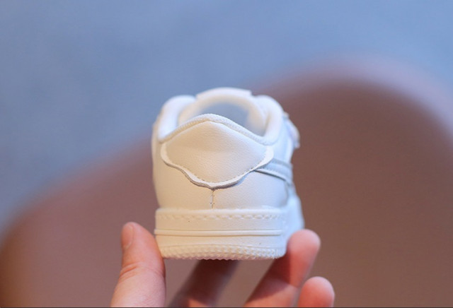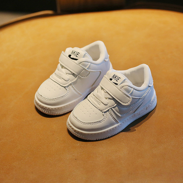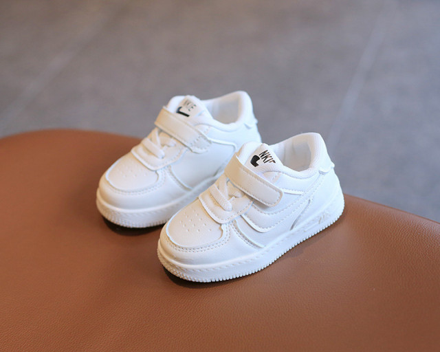 Adidasi pentru copii, din material tip piele ecologica, se inchid cu sireturi din elastic si bareta cu arici intr-o parte.