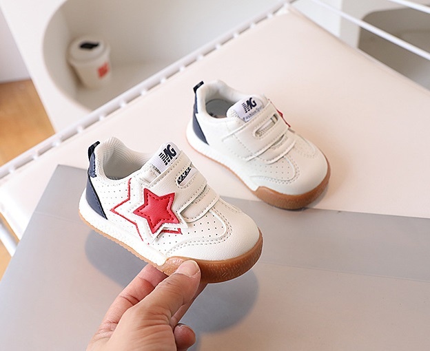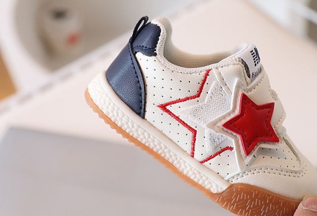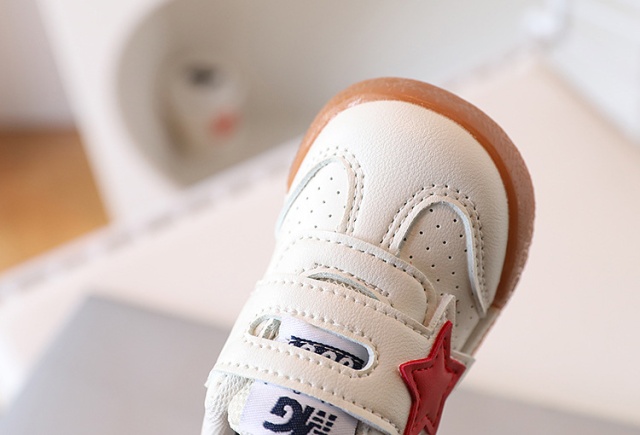 Adidasi pentru copii, din material tip piele ecologica, se inchid cu bareta cu arici intr-o parte, pe care este aplicata o stea.