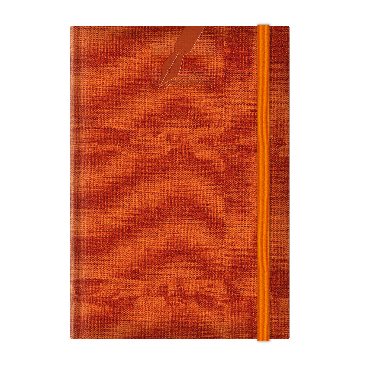 Cu o coperta atractiva de culoare orange, agenda dispune de un finisaj elegant cu elastic si suport pentru pix, asigurand astfel o utilizare practica si organizata.