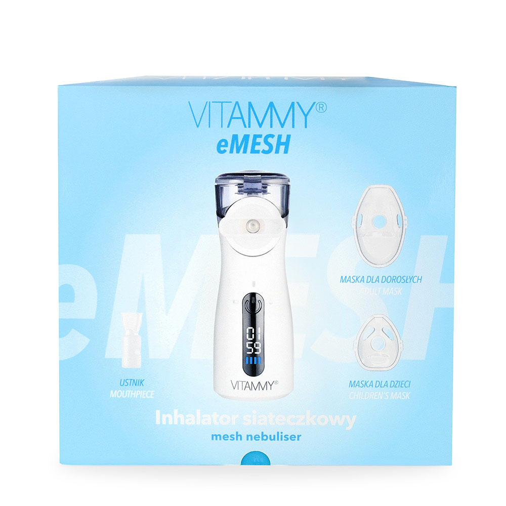 Aparat aerosoli cu tehnologie mesh Vitammy eMESH, afisaj digital, cronometru timp inhalare, functie de autocuratare, incarcare USB-C, masca pentru copii si adulti, mustiuc, saculet pentru transport Acest produs este un Dispozitiv medical. Descopera Vitammy eMESH - inhalatorul mesh creat pentru o nebulizare silentioasa si eficienta, direct la tine acasa. Este un dispozitiv medical certificat, conceput pentru ingrijirea zilnica, tratarea afectiunilor respiratorii si prevenirea infectiilor. Ecranul digital ofera control complet si afiseaza precis timpul de inhalare. Functiile avansate, precum oprirea automata si autocuratarea capului nebulizatorului, aduc comoditate si prelungesc durata de viata a dispozitivului. Vitammy eMESH este un inhalator compact, cu accesorii complete pentru copii si adulti, ideal pentru inhalatii de calitate, acasa sau in calatorii. Vitammy eMESH nebulizeaza eficient si livreaza particule fine de medicament, indiferent de varsta utilizatorului. Tehnologia mesh foloseste vibratii speciale care imping medicamentul printr-o membrana metalica fina, obtinand particule mici, utile in astm, alergii, afectiuni respiratorii, raceala sau POChP. Dispozitiv medical conform normelor - parametri testati si fiabili Vitammy eMESH are marcaj CE (0123) emis de organismul notificat TUV SUD si este conform cu standardul ISO IEC 60601-1-11 privind siguranta dispozitivelor medicale. Parametrii au fost testati cu solutie salina 0,9% NaCl , substanta de referinta folosita de producatorii profesionisti. Astfel, utilizatorul are garantia unei nebulizari eficiente si constante. Set complet de accesorii Gata de utilizare direct din cutie. Include doua masti (copii + adulti) si un mustiuc universal din silicon - fara achizitii suplimentare. Ecran digital mare Ecranul clar si contrastat afiseaza: - timpul exact de nebulizare (la secunda) - nivelul curent al bateriei Usor de depozitat si transportat Designul ergonomic permite transportul facil la plimbare, in vacanta sau depozitarea usoara acasa. Vine cu un saculet de transport care protejeaza dispozitivul si accesoriile. Inhalare silentioasa si confortabila Inhalatorul eMESH functioneaza extrem de silentios, cu un nivel sonor de pana la 50 dB - abia perceptibil. Inhalarea se poate face linistit, fara sa deranjeze pe cei din jur. Acumulator USB-C performant - fara cabluri, fara griji Acumulatorul reincarcabil permite utilizare flexibila, oriunde. Se incarca cu orice cablu USB-C: incarcator, powerbank sau chiar port auto. Functie de autocuratare a capului nebulizatorului - membrana curata, fara risc de deteriorare Autocuratarea foloseste vibratii pulsatorii pentru a elimina reziduurile de medicament din micro-orificiile membranei - zone imposibil de curatat manual. Prelungeste durata de viata si mentine eficienta nebulizarii. Pentru activare: Arunca restul de medicament si adauga apa distilata calda (30-60 C), amestec apa distilata + otet (3:1) sau 2 ml apa fierbinte (pana la 80 C). Tine apasat 5 secunde butonul ON OFF - se activeaza modul de autocuratare. Lasa sa functioneze pana se consuma solutia (aprox. 1-2 minute). Opreste dispozitivul si finalizeaza dezinfectarea conform instructiunilor. Oprire automata - economisire inteligenta a bateriei Dispozitivul se opreste automat dupa 20 de minute - durata standard pentru nebulizarea a 4 ml solutie si timpul recomandat pentru adulti. Durata exacta trebuie adaptata si stabilita de medic, in functie de varsta si tratament. Cap nebulizator interschimbabil - usor de inlocuit Membrana mesh se uzeaza in timp. Capul de nebulizare pentru Vitammy eMESH poate fi cumparat separat, astfel incat dispozitivul ramane functional fara a fi necesara achizitionarea unui inhalator nou. Continutul pachetului: - Inhalator mesh cu cap nebulizator (model YS32) - Capac protectie - Mustiuc - Masca pentru copii - Masca pentru adulti - Cablu USB-C - Saculet pentru transport - Manual de utilizare Specificatii tehnice: - Nu se utilizeaza pentru nebulizarea pentamidinei - Nu contine benzi elastice pentru masti - Debit nebulizare: , 0.2 ml min - Zgomot in functionare: , 50 dB(A) - Dimensiuni particule: 5 µm 25% - Volum minim in cap nebulizator: 0.5 ml - Volum maxim: 8 ml - Baterie Li-ion: 3.7 V - Dimensiuni: 35 x 50 x 117 mm - Clasa de siguranta: BF - Autonomie baterie: peste 60 minute de functionare continua,