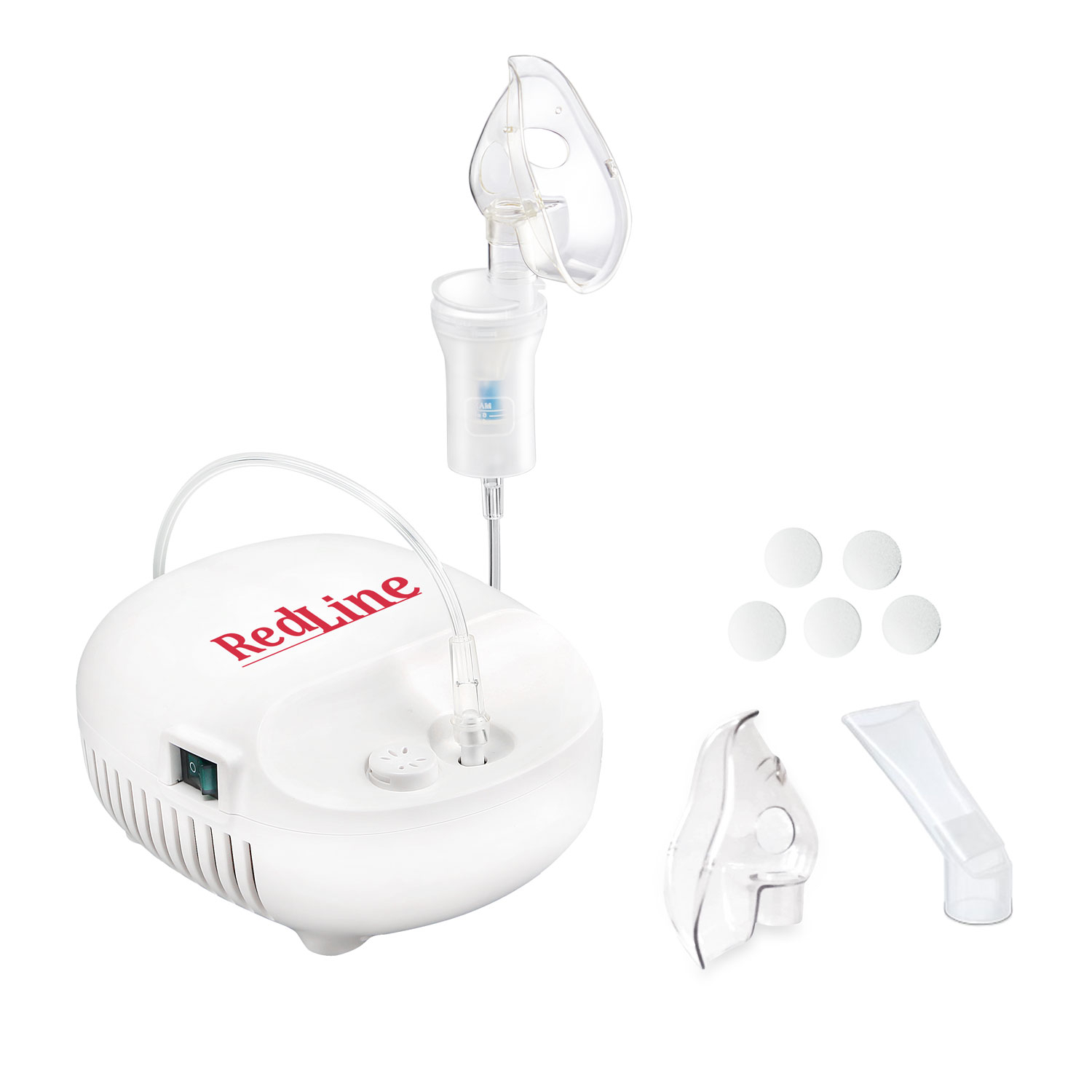 Aparat aerosoli RedLine NB-230C, masca copii si adulti, particule 3 microni, nebulizator inhalator cu compresor Acest produs este un Dispozitiv medical. RedLine NB-230C este un aparat de aerosoli compact ce poate fi folosit atat in clinici medicale cat si la domiciliu, utilizand o gama larga de medicamente. Acest dispozitiv utilizeaza eficient medicamentul avand un volum rezidual mic. Dispozitivul este util pentru toti membrii familiei. Caracteristici principale: - Nebulizare cu compresor; - Design ergonomic compact; - Administrarea eficienta a medicamentelor; - Calitatea asigurata; - Dimensiuni reduse; - Capacitatea cupei (paharului) de nebulizare de 8 ml; - Rata de nebulizare: 0.3 ml min; - Zgomot redus 58dB - Utilizare casnica si clinica; - 2 masti: copii si adulti; - Piesa bucala; - 5 filtre de aer; - Furtun de aer de 2 m; - Pahar de nebulizare performant, cu o tehnologie de reducere a sunetului produs de aparat; - Complet pentru utilizare imediata. RedLine NB-230C este un dispozitiv destinat terapiei prin inhalare pentru tratarea cu succes a astmului, a bronsitelor cronice sau a altor afectiuni respiratorii. In timpul terapiei prin inhalare este foarte important ca medicamentul sa ajunga exact in partea cailor respiratorii care necesita tratament. In aceasta situatie, performantele paharului de nebulizare sunt importante.,150 x 160 x 85 mm