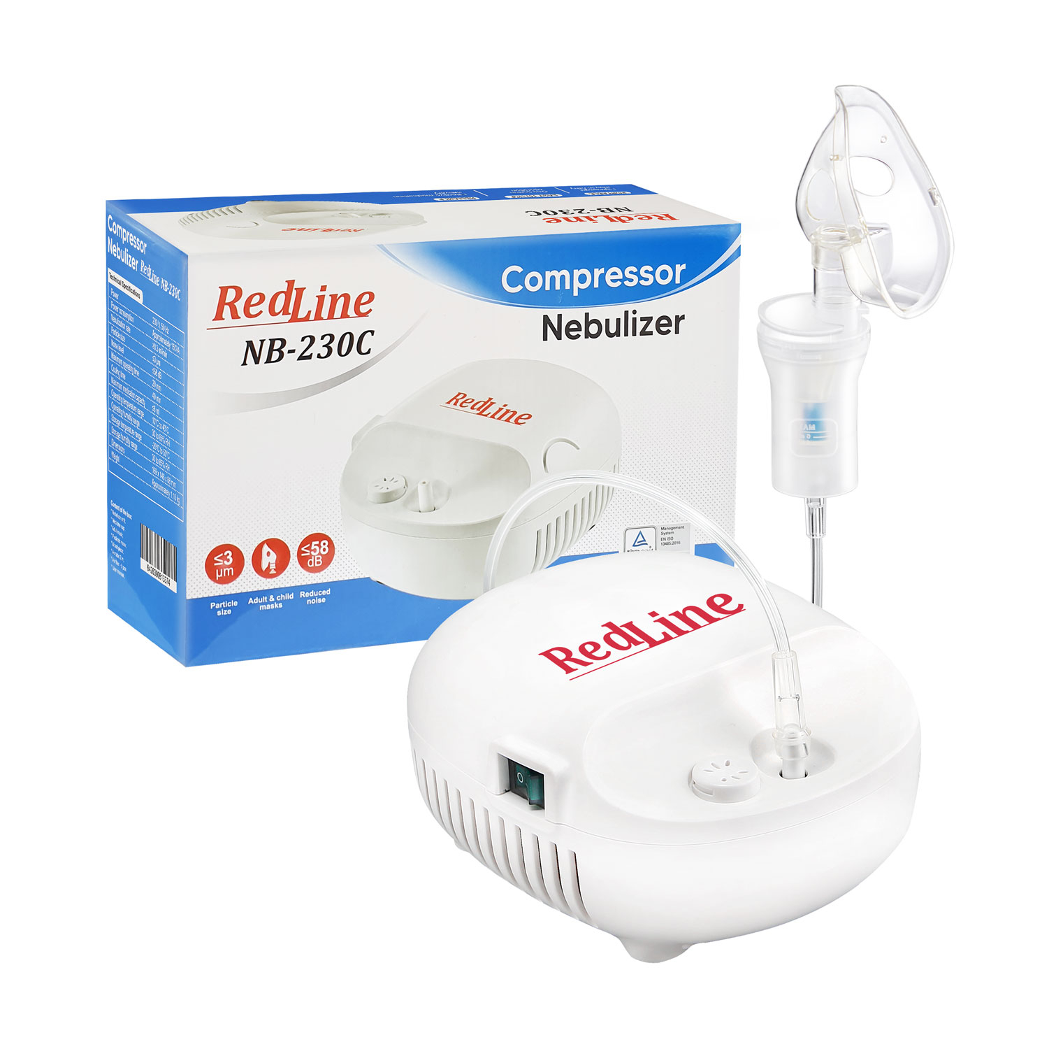 Aparat aerosoli RedLine NB-230C Ultra, masca copii si adulti, kit Ultra cu furtun de 6m si masca bebelusi, nebulizator cu compesor Acest produs este un Dispozitiv medical. RedLine NB-230C Ultra este un aparat de aerosoli compact ce poate fi folosit atat in clinici medicale cat si la domiciliu, utilizand o gama larga de medicamente. Acest dispozitiv utilizeaza eficient medicamentul avand un volum rezidual mic. Dispozitivul este util pentru toti membrii familiei. Caracteristici principale: - Nebulizare cu compresor; - Design ergonomic compact; - Administrarea eficienta a medicamentelor; - Calitatea asigurata; - Dimensiuni reduse; - Capacitatea cupei (paharului) de nebulizare de 8 ml; - Rata de nebulizare: 0.3 ml min; - Zgomot redus 58dB - Utilizare casnica si clinica; - 3 masti: bebelusi, copii si adulti; - Piesa bucala; - 5 filtre de aer; - Furtun de aer de 2 m; - Furtun de aer de 6 m; - Pahar de nebulizare performant, cu o tehnologie de reducere a sunetului produs de aparat; - Complet pentru utilizare imediata. RedLine NB-230C Ultra este un dispozitiv destinat terapiei prin inhalare pentru tratarea cu succes a astmului, a bronsitelor cronice sau a altor afectiuni respiratorii. In timpul terapiei prin inhalare este foarte important ca medicamentul sa ajunga exact in partea cailor respiratorii care necesita tratament. In aceasta situatie, performantele paharului de nebulizare sunt importante. DESIGN COMPACT Cu un design nou si compact, aparatul de aerosoli RedLine NB-230C Ultra este echipat cu un compresor de calitate superioara ce poate rezista cu succes la foarte multe utilizari. Pentru a nu pierde nicio picatura de medicamentatie, producatorul a conceput aparatul cu un suport ce permite fixarea in pozitie verticala a kitului de nebulizare. Comutator de operare ON OFF Comutatorul este pozitionat pe lateral pentru a preveni intrarea accidentala a apei. Suport pentru paharul de nebulizare Suport ce permite fixarea in pozitie verticala a paharul de nebulizare. In acest fel aveti ambele maini la dispozitie pentru operatiunea de dozare a medicamentelor. Locas pentru depozitarea cablului In partea din spate a aparatului se afla proiectat un spatiu pentru depozitarea cablului de alimentare. Atunci cand nu utilizati dispozitivul o perioada mai lunga de timp, strangeti cablul in acest spatiu. Picioruse de silicon Pentru a preveni alunecarea dispozitivului, acesta dispune de niste picioruse de silicon antiderapante. In timpul functionarii aparatului, acestea nu doar ofera o stabilitate mai buna, dar si diminueaza zgomotul si vibratiile. Mod de functionare Dispozitivul functioneaza prin furnizarea de aer comprimat in paharul de nebulizare unde are loc pulverizarea solutiei care este transformata in picaturi microscopice ce sunt usor de inhalat. Aerul compresat se pompeaza prin furtunul de aer flexibil in rezervorul cu solutia pentru inhalare. Ca rezultat lichidul se disperseaza in particule foarte mici (chiar mai mici decat vaporii de apa), dupa care se inhaleaza fie pe cale nazala, fie pe cale orala si ajung la mucoasele afectate, cu o maxima eficienta. UTILIZARE IMEDIATA. Aparatul de aerosoli RedLine NB-230C Ultra se poate utiliza imediat deoarece este echipat cu un set ULTRA complet de accesorii: Masca adulti - 1 buc Masca pediatrica - 1 buc Masca bebelusi - 1 buc Furtun de aer de 2 m - 1 buc Furtun de aer 6 m - buc Pahar de nebulizare- 1 buc Piesa bucala - 1 buc Filtre de aer - 5 buc,16.9 x 14.6 x 8.8 cm