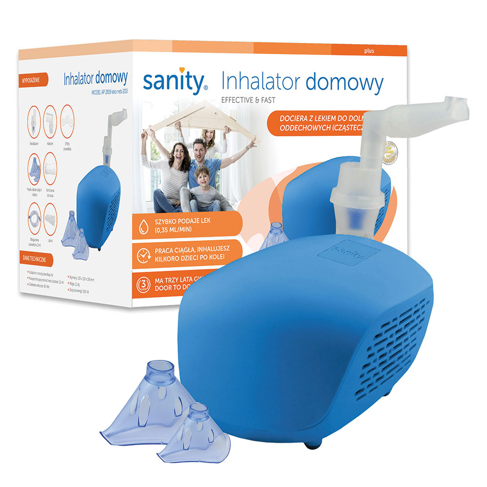 Caracteristici principale: - Compact, la indemana si usor; - Nivel redus de zgomot; - Administrare rapida a medicamentelor; - Destinat pentru intreaga familie; - Rata de nebulizare eficienta, peste 0.35 ml min; - Siguranta in timpul tratamentului; - Greutate mica, usor de transportat; Sanity Domowy se caracterizeaza ca fiind un dispozitiv de uz casnic de inalta calitate, cu o greutate mica, economic si simplu de utilizat de intreaga familie. Se foloseste pentru terapia cu aerosoli pentru a trata bolile si afectiunile tractului respirator si inferior, cum ar fi rinofaringita cronia, bronsita, raceala, boala pulmonara obstructiva cronica, alergii, penumonie, etc. MMAD 2,6 µm Producatorul a gandit kit-ul de nebulizare astfel incat dimensiunea particulelor sa fie de 2,6 µm, avand parametrii excelenti care garanteaza eficacitatea inhalarii. Accesorii recomandate: Kit de accesorii Redline Ultra , suzeta Bebe Neb , furtun de aer 6 m SPECIFICATII TEHNICE: Metoda nebulizare: Cu piston Capacitate vaporizare (ml min): 0.35 Capacitate cupa de medicamente: 12 ml Dimensiuni particule (μm): 2.6 Debit maxim de aer: 8 l min Nivel zgomot: 61,5 dB Temperatura si umiditatea de functionare: 10 C 40 C; 10 - 95 % Temperatura si umiditatea de depozitare: -25 C 70 C; 10 - 95 % Alimentare: La retea Tensiune alimentare: 230 V Dimensiuni: 163 x 110 x 195 mm Greutate: 1,1 kg Culoare: Albastru,163 x 110 x 195 mm