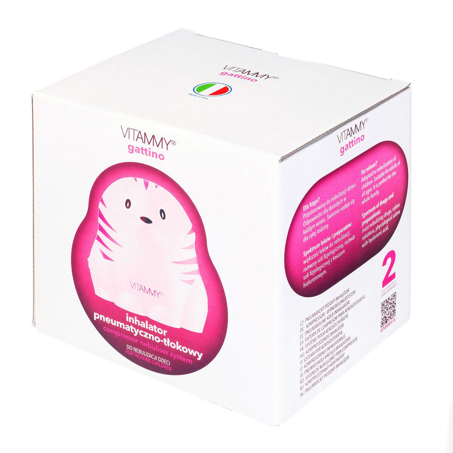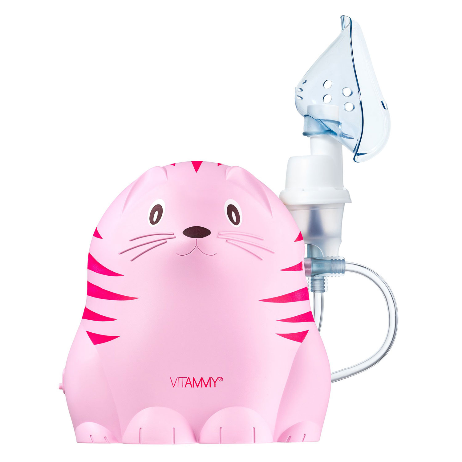 Aparat aerosoli Vitammy Gattino A1503, nebulizator cu compresor, set complet de accesorii, Roz Caracteristici: - Eficient in tratarea afectiunilor cailor respiratorii; - Dimensiune particule: 4.7 μm; - Rata de nebulizare eficienta: 0.3 ml min; - 2 masti: pediatrica si de adulti - Nebulizare cu compresor; - Fabricat din materiale non-toxice; - Design atractiv si prietenos sub forma unei pisici; - Maner pentru transport; - Suport pentru paharul de nebulizare; - Fabricat in Italia. Aparatul de aerosoli cu compresor VITAMMY Gattino A1503 este un dispozitiv destinat terapiei prin inhalare pentru tratarea inflamatiilor tractului respirator superior si inferior. Este indicat in tratarea bronsitelor cronice sau a altor afectiuni respiratorii. Aerul compresat se pompeaza prin tubul flexibil in rezervorul cu solutia pentru inhalare. Ca rezultat lichidul se disperseaza in particule foarte mici (chiar mai mici decat vaporii de apa), dupa care se inhaleaza fie pe cale nazala, fie pe cale orala si ajung la mucoasele afectate, cu o maxima eficienta. Nebulizatorul Vitammy Gattino este un dispozitiv medical care are parametrii de nebulizare conform standardului PN-EN13544-1. Avantajele terapiei cu aerosoli - Agentii de nebulizare si medicamentele actioneaza exact in zona afectata si sunt absorbite in sange intr-o mica masura. Medicamentul administrat sub forma de aerosoli in concentratie mare ajunge direct la plamani si astfel este posibil sa se utilizeze cea mai mica doza eficienta. - Posibilitatea de a ajusta doza individuala si tipul de medicament la fiecare pacient. - Nebulizarea aplicata la timp poate permite pacientului sa evite necesitatea de a lua antibiotice, sa scurteze durata bolii si sa-i atenueze semnificativ simptomele. Accesorii incluse - Pahar de nebulizare - Furtun de aer - Piesa bucala - Piesa nazala - Masca pediatrica - Masca de adulti - Filtru de aer,12.6 x 15.6 x 16.4 cm