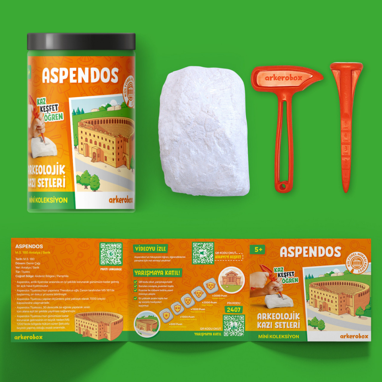 Cu ajutorul acestui kit descoperiti misterul Aspendos ! Aspendos este un teatru în aer liber care a supraviețuit până în zilele noastre cu cea mai bună conservare dintre teatrele antice aflat in Antalya/Serik - Turcia .