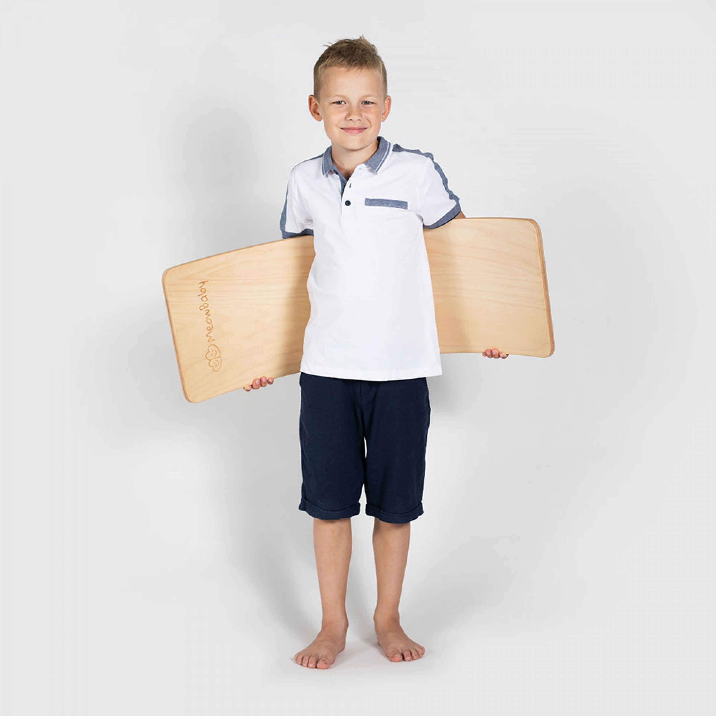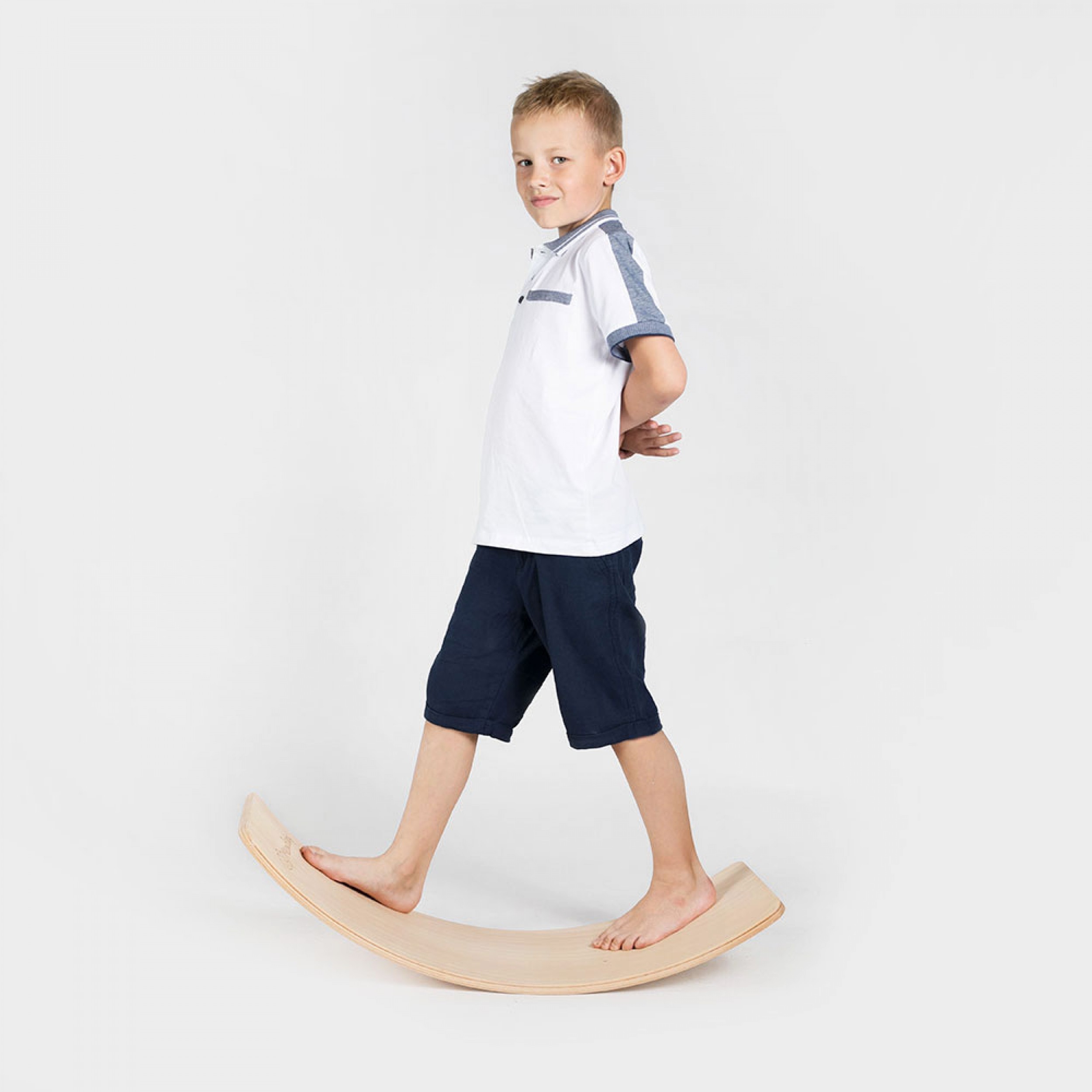 O tablă de echilibru din lemn, care ajută la îmbunătățirea coordonării motorii, la antrenarea echilibrului și la îmbunătățirea abilităților motorii. Tabla oferă posibilități nelimitate de joc creativ și exerciții și care ajută la dezvoltarea mușchilor care sunt responsabili pentru o postură corectă.