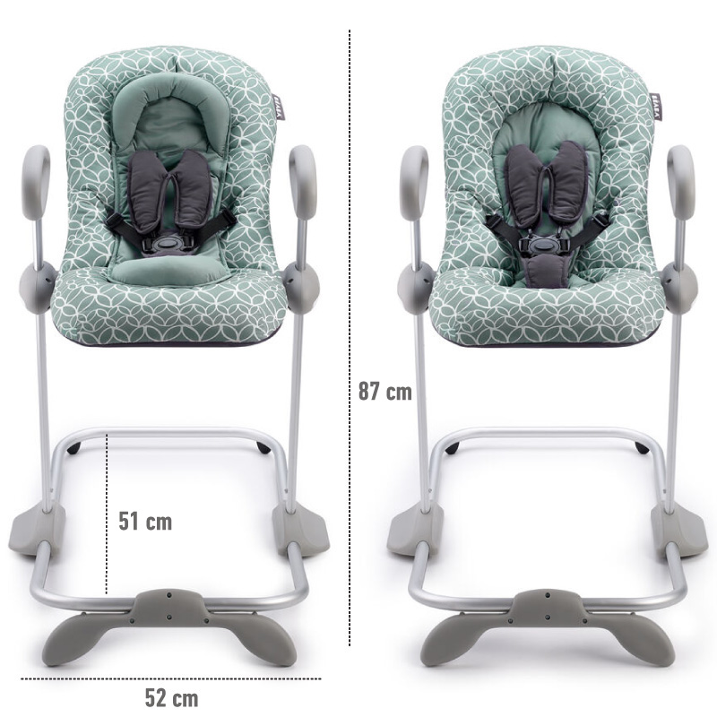 Descriere Balansoar Beaba Up&Down III Leaves Recomandat de la nastere pana o greutate de 9 kg, acest Balansoar Up&Down III de la Beaba este un concept revolutionar care permite bebelusului sa participe la viata din casa si sa stea aproape de parinti. Ergonomic și confortabil, Balansoarul Beaba Up & Down III este reglabil, dotat cu suport pentru nou-nascut, pe care il puteti utiliza pana la varsta de 3 luni. Foarte practic, cu o singura atingere, puteti alege intre 4 inaltimi diferite. Copilul va avea ocazia sa observe ce se intampla in jurul lui, indiferent daca te afli pe podea sa te joci cu el, la masa sau pe canapea. Treptat, el se va simți din ce in ce mai preocupat de ceea ce se intampla si va reactiona la discutiile si reactiile dvs. Caracteristici Balansoar Beaba Up&Down III Leaves: Cele trei pozitii de inclinare va vor permite sa asezati bebelusul din pozitie de observare in pozitie de somn. Sistem de blocare, util atunci cand doriti oprirea functiei de leganare. Balansoar echipat cu ham de siguranta in 5 puncte. Acest model este echipat cu manere pentru transport, astfel incat sa puteti lua balansoarul cu dvs. oriunde v-ati afla. Insertul pentru nou-nascut se utilizeaza intre 0-3 luni, este ultra-moale si complet detasabil pentru spalare. Balansoarul poate fi reglat pe inaltime in 4 pozitii. 3 pozitii de inclinare, inclusiv pozitie de somn. Spatarul se inclina usor, cu o singura mana. Functie de leganare pentru linistirea bebelusului. Sezutul este detasabil si lavabil la 40°C. Caracteristici tehnice Balansoar Beaba Up&Down III Leaves: Dimensiuni: 51 x 52 x 87 cm. Greutate: 5 kg. Utilizare: 0 - 9 kg.