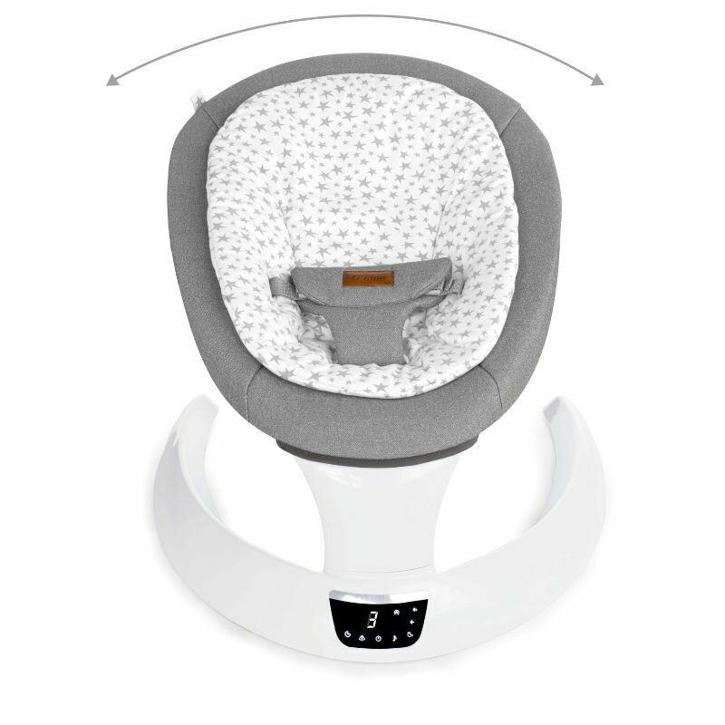 ✨Moon este hamacul electric ideal pentru acele momente in care ai nevoie de o pauza, dar vrei sa stii ca bebelusul tau se afla intr-un loc sigur, confortabil si linistitor. Cu 5 viteze de leganare, 17 sunete relaxante, timer, telecomanda si un design compact, Moon iti ofera control total si liniste sufleteasca – oriunde in casa.✨