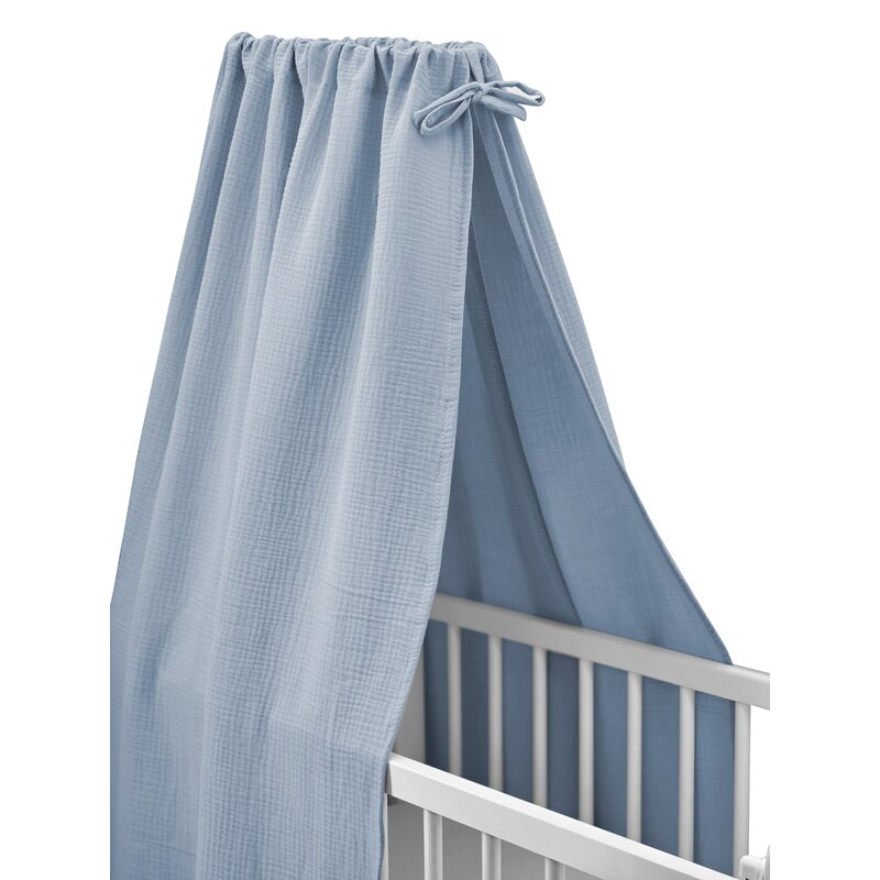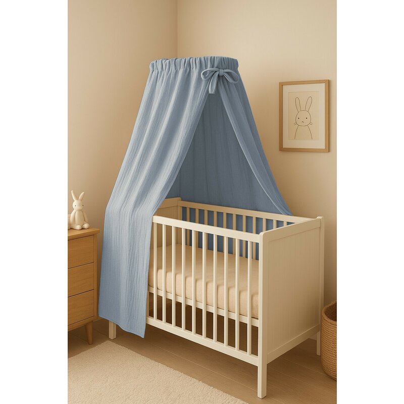 ❤️Baldachin Qmini, pentru patut, leagan sau co-sleeping, 145x200 cm, Muselina dubla 100% bumbac, Jeans❤️