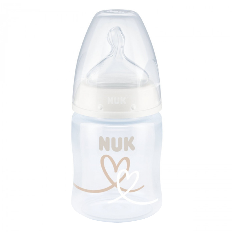 Descriere Biberon Nuk First Choice PP 150 ml Control Temperatura Tetina Silicon M 0-6 luni Inimioare Biberon Nuk First Choice PP 150 ml Control Temperatura Tetina Silicon M 0-6 luni Inimioare - pentru hranire sigura si relaxata.Timp de multi ani, First Choice NUK a fost prima alegere pentru hranirea bebelusului cu biberonul. Cu First Choice NUK, am reusit sa ne apropiem si mai mult de natura - pentru o dezvoltare sanatoasa a maxilarului si o senzatie de baut ca la sanul mamei.Important: Controlul Temperaturii de la NUK reprezinta o metoda aditionala de verificare. De aceea, te rugam sa verifici din nou temperatura manual, inainte de a-l hrani pe copil. Pentru verificare, poti turna cateva picaturi de hrana pe incheietura mainii. Caracteristici Biberon Nuk First Choice PP 150 ml Control Temperatura Tetina Silicon M 0-6 luni Inimioare: Indicatorul Controlul Temperaturii NUK isi schimba culoarea din albastru (rece) in alb (prea fierbinte). Testat clinic: pentru o combinatie optima intre hranirea la san si hranirea cu biberonul. Forma speciala NUK este realizata dupa modelul mamelonului mamei in timpul alaptarii. Aceasta lasa limbii si maxilarului suficient spatiu de miscare in timp ce copilul suge. Cu noua sa zona moale, tetina din silicon se potriveste perfect pe palatul gurii bebelusului, creand o senzatie naturala in timp ce bea. Sistemul de ventilare anti-colici creeaza un flux natural, astfel incat bebelusul sa poata bea intr-un mod relaxat, fara a inghiti aer. Usor de umplut si de curatat: sticla cu gat extra-larg. Fabricat din poliamida de calitate superioara, usoara. Igienic, fara miros, fara substante daunatoare - fara BPA . Prindere sigura si stabila prin forma usor conturata a sticlei cu baza lata. Biberoanele NUK sunt realizate in Germania si respecta Standardul European de Siguranta EN 1400 si EN14350.