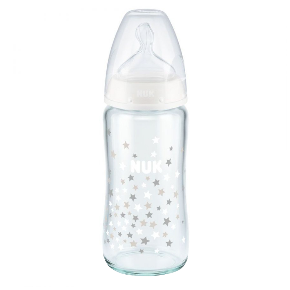 Descriere Biberon Nuk First Choice Sticla 240 ml Control Temperatura Tetina Silicon M 0-6 luni Alb Biberon Nuk First Choice Sticla 240 ml Control Temperatura Tetina Silicon M 0-6 luni Alb - pentru o dezvoltare sanatoasa a maxilarului si o senzatie de baut ca la sanul mamei.Forma corecta si naturala pentru maxilarForma speciala NUK este realizata dupa modelul mamelonului mamei in timpul alaptarii. Aceasta lasa limbii si maxilarului suficient spatiu de miscare in timp ce copilul se hraneste.Moale ca sanul mameiCu noua sa zona moale, tetina din silicon se potriveste perfect pe palatul gurii bebelusului oferind o senzatie naturala in timp ce bea. Ajuta la prevenirea colicilorSistemul de ventilare anti-colici creeaza un flux natural, astfel incat bebelusul sa poata bea intr-un mod relaxat, fara a inghiti aer.Important: Controlul Temperaturii de la NUK reprezinta o metoda aditionala de verificare. De aceea, te rugam sa verifici din nou temperatura manual, inainte de a-l hrani pe copil. Pentru verificare, poti turna cateva picaturi de hrana pe incheietura mainii. Caracteristici Biberon Nuk First Choice Sticla 240 ml Control Temperatura Tetina Silicon M 0-6 luni Alb: Indicatorul Controlul Temperaturii NUK isi schimba culoarea din albastru (rece) in alb (prea fierbinte). Tetina moale din silicon, varsta 0-6 luni, M (orificii medii - pentru formule de lapte). Testat clinic: perfect pentru alternarea alaptarii cu hranirea cu biberonul. Ajuta la prevenirea colicilor: sistem de ventilare anti-colici. Datorita gatului larg, biberonul poate fi umplut si curatat usor. Prindere sigura si stabila - prin forma usor conturata a sticlei cu baza lata. Fabricat din sticla durabila, de inalta calitate. Igienic, fara miros, fara substante daunatoare - fara BPA. Biberoanele NUK sunt realizate in Germania si respecta Standardul European de Siguranta EN 1400 si EN14350.