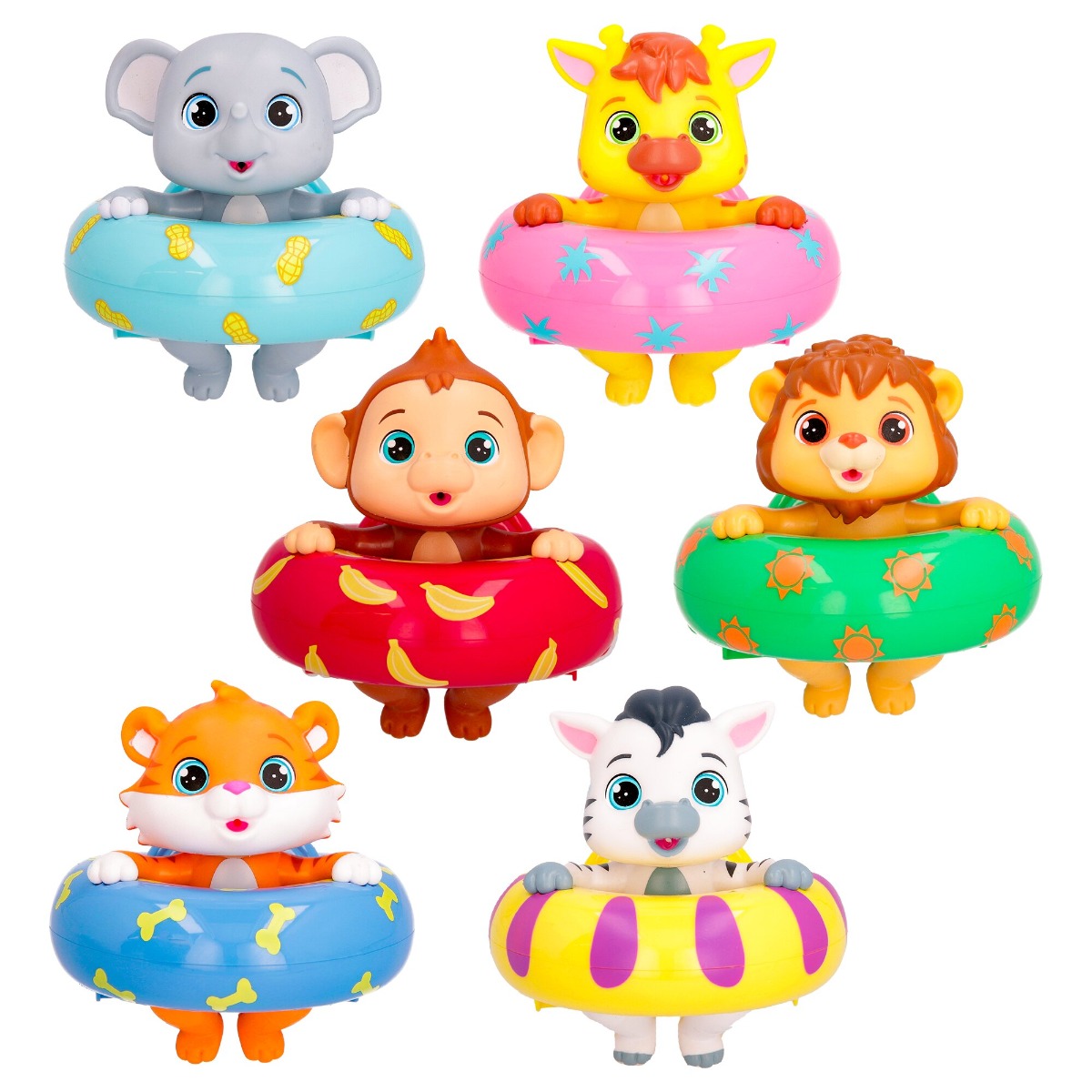 Bloopies Floaties Jungle sunt jucarii de baie interactive care transforma timpul petrecut in apa intr-o adevarata distractie pentru cei mici. Fiecare jucarie reprezinta un animal din jungla, cum ar fi un tigru, o maimuta, o zebra, o girafa, un leu sau un elefant si vine cu un colac de inot colorat. Aceste jucarii stimuleaza imaginatia si sunt perfecte pentru a transforma rutina zilnica intr-o activitate placuta si captivanta.