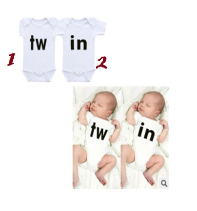 Body pentru gemeni, cu inscriptie "TW" sau "IN" pe piept. Este cu manecute scurte, se inchide cu capse intre picioruse.