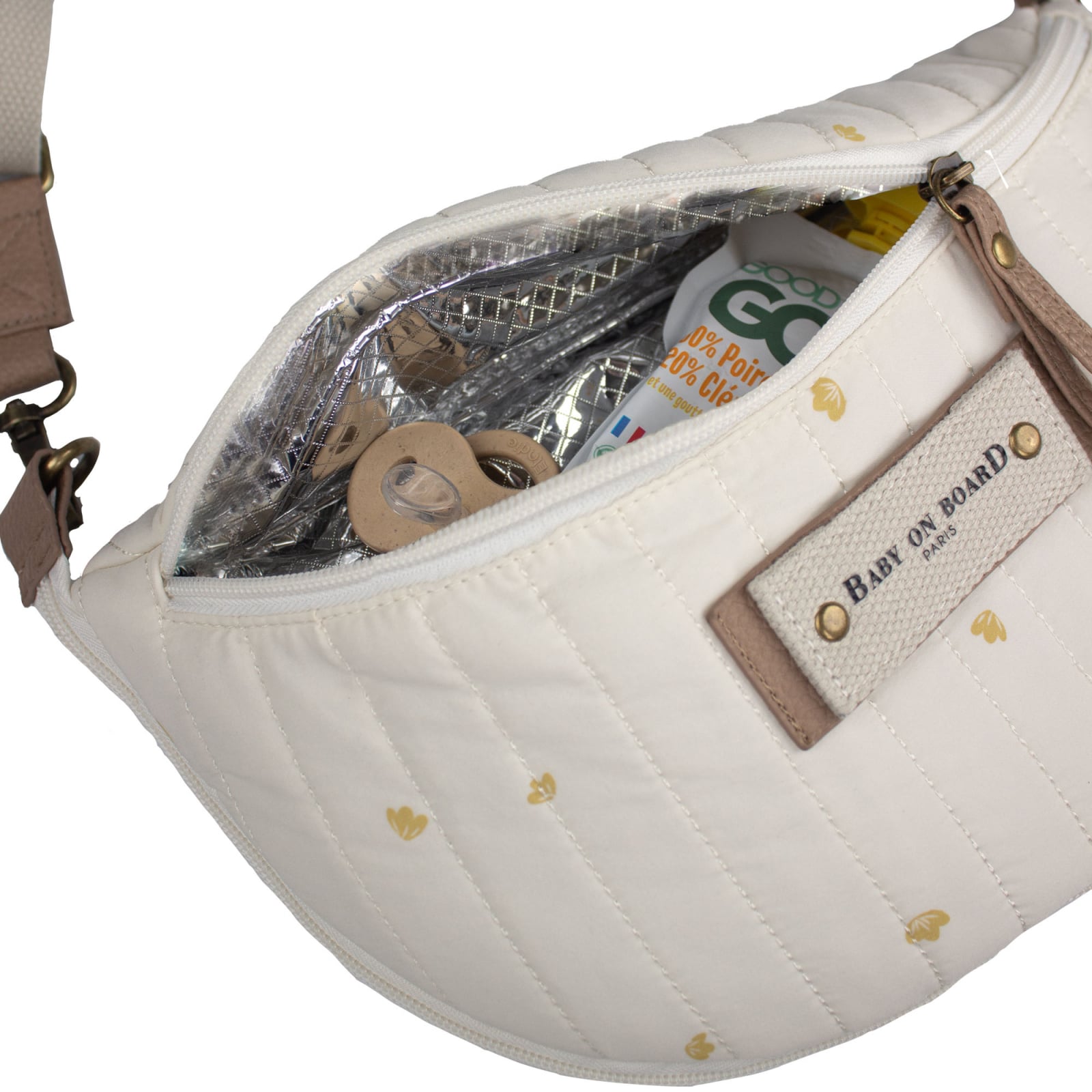 Borseta bebelusi Baby On Board Armelle Banana Cotton aduce fermecatorul material Cotton din gama Simply intr-un format ultra-compact. Borseta bebelusi Baby On Board Armelle Banana Cotton ofera doua buzunare cu fermoar si un compartiment ascuns la spate, ideal pentru telefon sau carduri. Cu o greutate de numai 320 g, Borseta bebelusi Baby On Board Armelle Banana Cotton transporta esentialul ,€“ scutece, pachet mic de servetele, mini-crema ,€“ fara sa incarce parintele.
