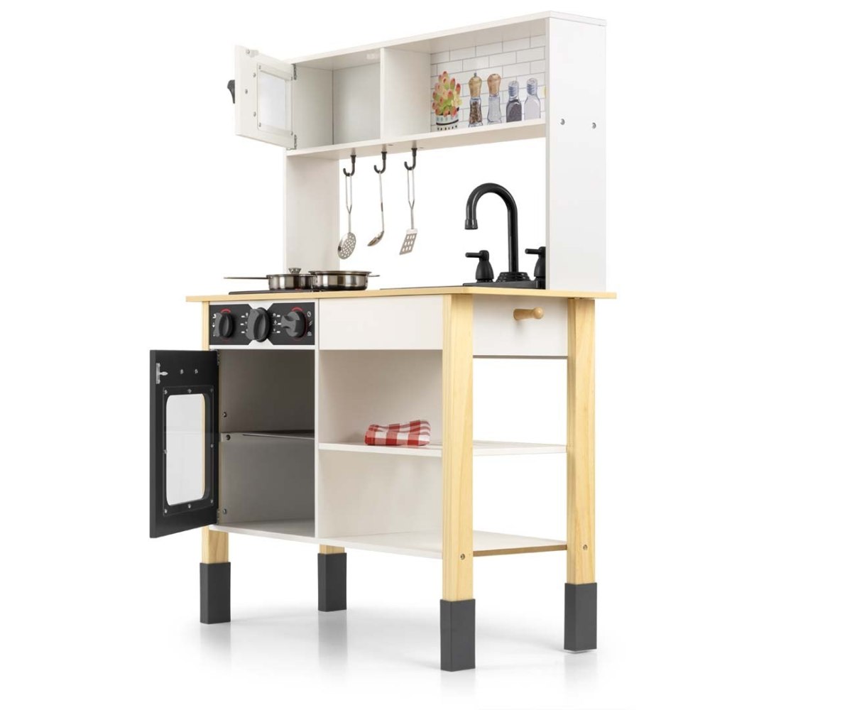 Aceasta bucatarie de jucarie este realizata din materiale durabile si sigure, avand un design modern care imita perfect o bucatarie reala. Este ideala pentru jocurile de rol si pentru dezvoltarea abilitatilor sociale, a creativitatii si a coordonarii mana-ochi.