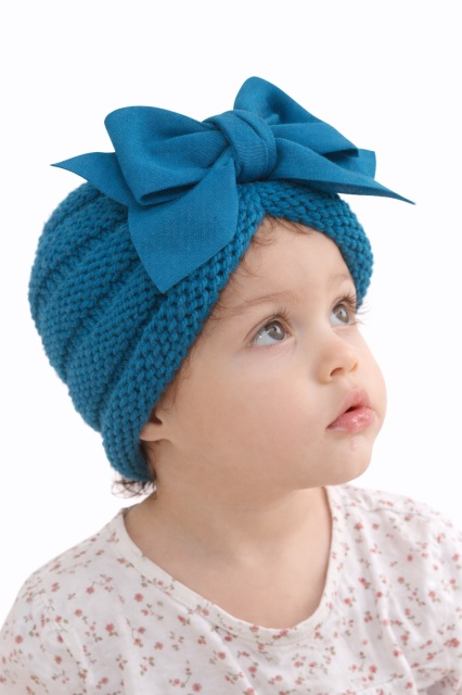 Acest produs Caciulita albastra crosetata tip turban cu fundita aplicata in fata este model LIx-22099-1-sa1
