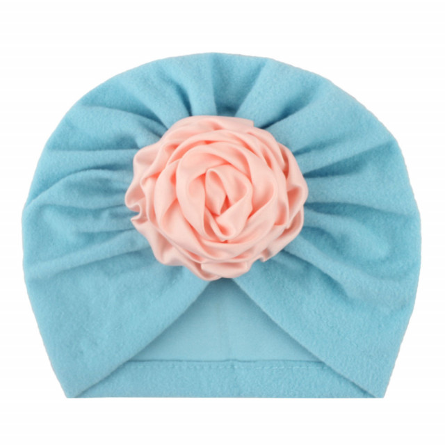 Acest produs Caciulita bleu tip turban cu floare din saten aplicata este model MDx-19100-1-CT8