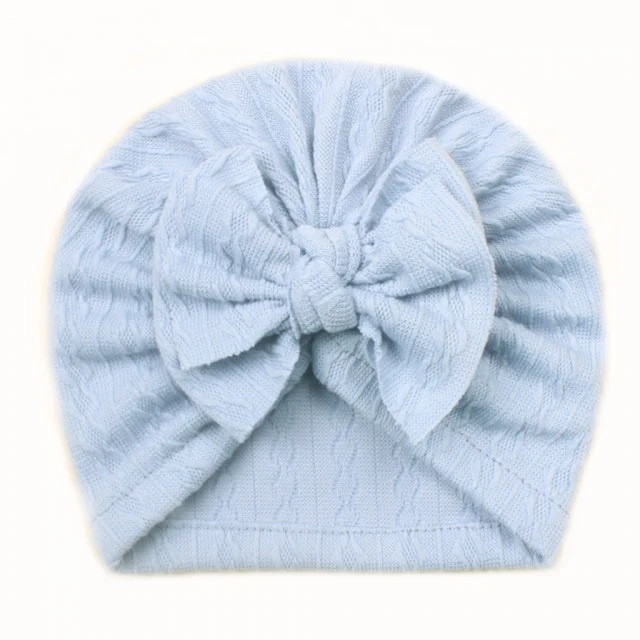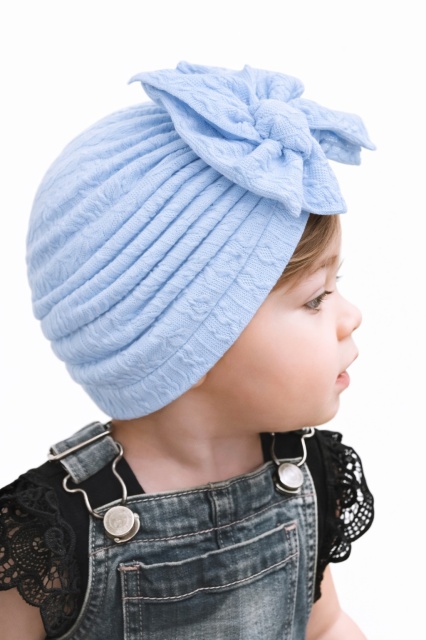 Acest produs Caciulita bleu tip turban cu model din tesatura si funda aplicata este model AMx-22032-5