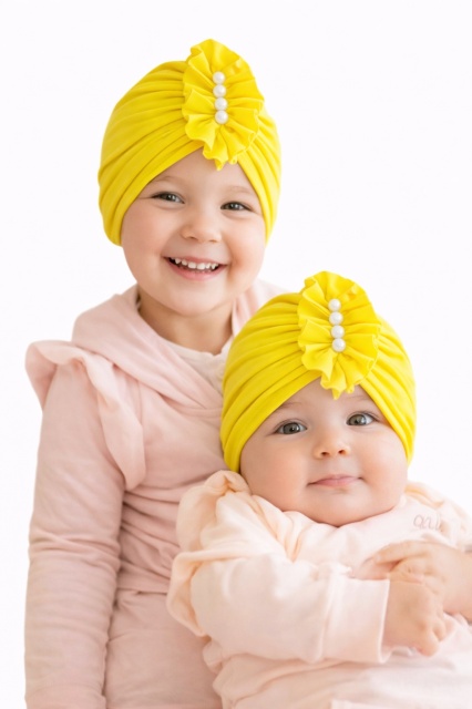 Acest produs Caciulita galbena tip turban cu perlute aplicate in fata este model MBMZ046-1-CT7
