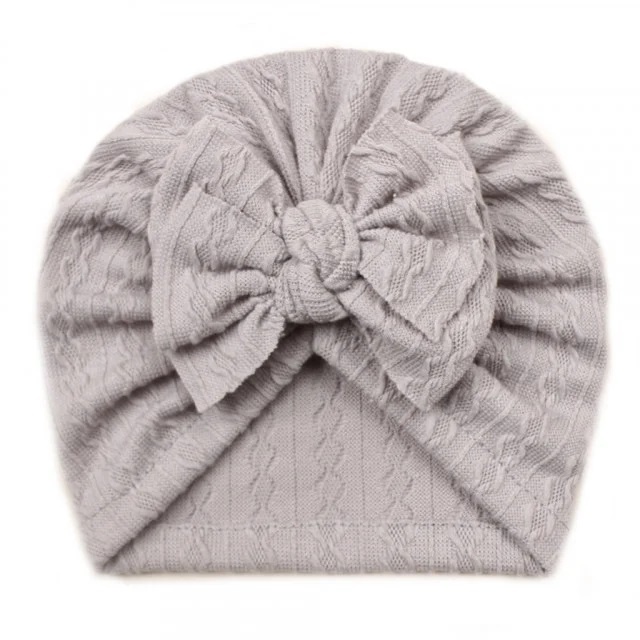 Acest produs Caciulita gri tip turban cu model din tesatura si funda aplicata este model AMx-22032-3