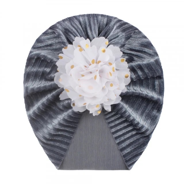 Acest produs Caciulita gri tip turban din catifea cu floare aplicata este model MDx-20153-5