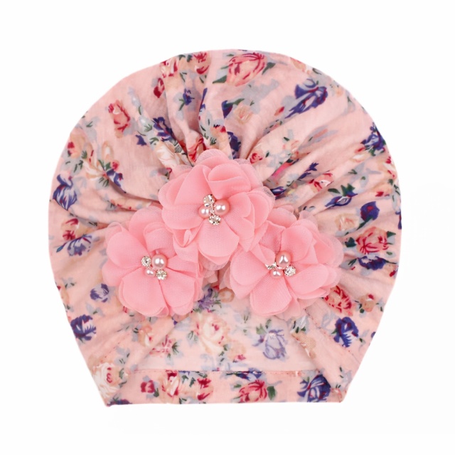 • Caciulita tip turban cu floricele roz cu strasuri aplicate mdx-19062-4-c3