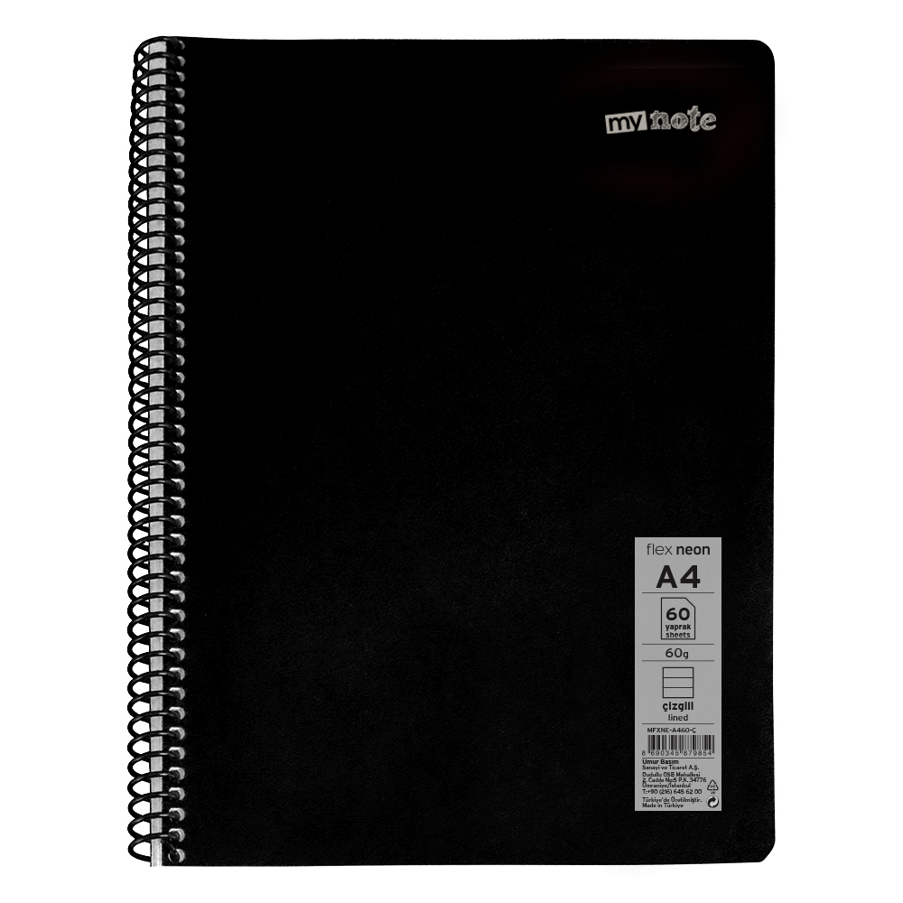 Caiet cu spira Mynote, format A4, 60 file offset 60 g/mp, liniatura dictando, coperta PP neon, mix de 8 culori,Liniatura|Liniatura|Dictando Numar file|Numar file|60 Spira|Spira|Da Brand|Brand|Mynote Tip|Tip|Caiet Format|Format|A4,bucata
