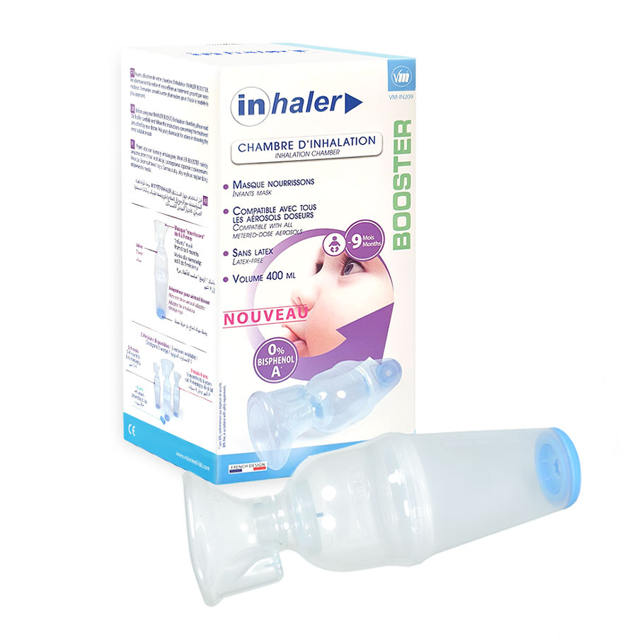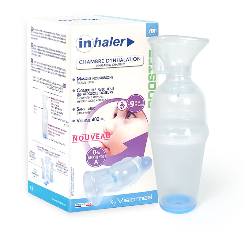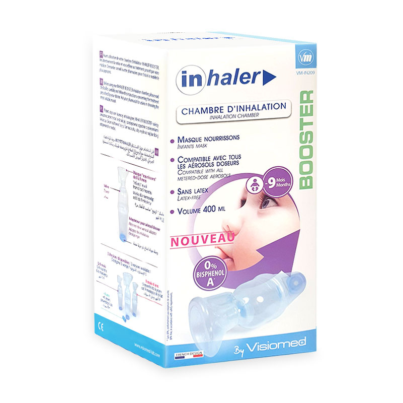 Camera inhalare Visiomed VM-IN209, masca bebelusi 0 - 9 luni CARACTERISTICI: - Camera de inhalare din material antistatic; - Masca pentru bebelusi 0 - 9 luni; - Prevazuta cu doua supape de silicon; - Fara latex; - Fara bisfenol A (BPA); - Volum 400 ml; - Un set de 2 supape de schimb. Pentru o asimilare mai simpla si mai eficienta a medicamentelor, medicii specialisti recomanda ca impreuna cu inhalatorul sa se foloseasca si camera de inhalare (denumita si spacer). Camera de inhalare Visiomed VM-IN209 este un model conceput special pentru bebelusi. Dispozitivul este echipat cu doua supape de silicon pentru a administra mai eficient medicamentele inhalate. Proximitatea supapelor si a mastii reduce pierderea substantelor active, imbunatateste livrarea lor in plamani, reducand in acelasi timp cantitatea de medicament depusa in zona orofaringiana. Visiomed VM-IN209 contribuie la reducerea vitezei particulelor si la reducerea dimensiunii particulelor. In acest fel, medicatia poate fi inhalata incet si permite bebelusului sa respire atunci cand este pregatit. Pachetul contine doar tubul de inhalare si masca iar spray-ul inhalator din imaginile descriptive este doar pentru a explica functionarea acestui dispozitiv. Avantajele utilizarii camerei de inhalare Visiomed VM-IN209 Atunci cand utilizati doar inhalatorul Atunci cand utilizati inhalatorul impreuna cu un spacer Medicamentul ajunge adesea in gura, gat sau stomac si este dificil de sincronizat momentul pulverizarii cu cel al respiratiei. Pe langa gustul neplacut cauzat, acesta mai poate avea si efecte secundare. Medicamentul este administrat in cantitate mai mare in plamani, unde acesta este mai eficient. Un alt avantaj al folosirii spacer-ului consta in faptul ca nu mai este necesara coordonarea actionarii inhalatorului cu inspiratia.,18 x 8 cm (camera fara masca