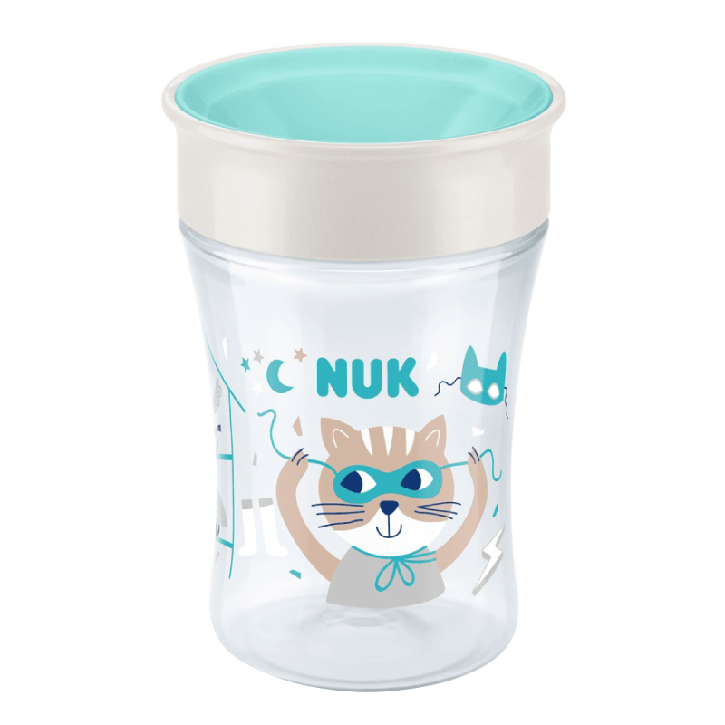 Descriere Cana Nuk Evolution Magic 230 ml de la 8 luni Pisica Cana Nuk Evolution Magic 230 ml de la 8 luni Pisica - primii pasi pe drumul catre independenta.NUK Cana Magic prezinta un nou tip de margine si un sigiliu care le permit celor mici sa bea din orice parte doresc ei. Cand copilul isi pune buzele pe marginea canii, sigiliul magic se deschide imediat.Discul din silicon inchide perfect cana, impiedicand varsarea lichidelor.Cana Nuk Evolution Magic este confectionata din material rezistent (polipropilena de calitate superioara), care nu contine BPA.Partile componente pot fi demontate si reasamblate rapid si eficient. Sunt usor de intretinut si pot fi curatate in masina de spalat vase. Caracteristici Cana Nuk Evolution Magic 230 ml de la 8 luni Pisica: Fabricata din polipropilena de calitate superioara. Cana de antrenament cu margine de baut la 360°. Anti-curgere. Discul din silicon sigileaza cana perfect. Fara BPA. Volum 230 ml. Canile NUK sunt realizate in Germania si sunt conforme cu Standardul European de Siguranta EN14350.