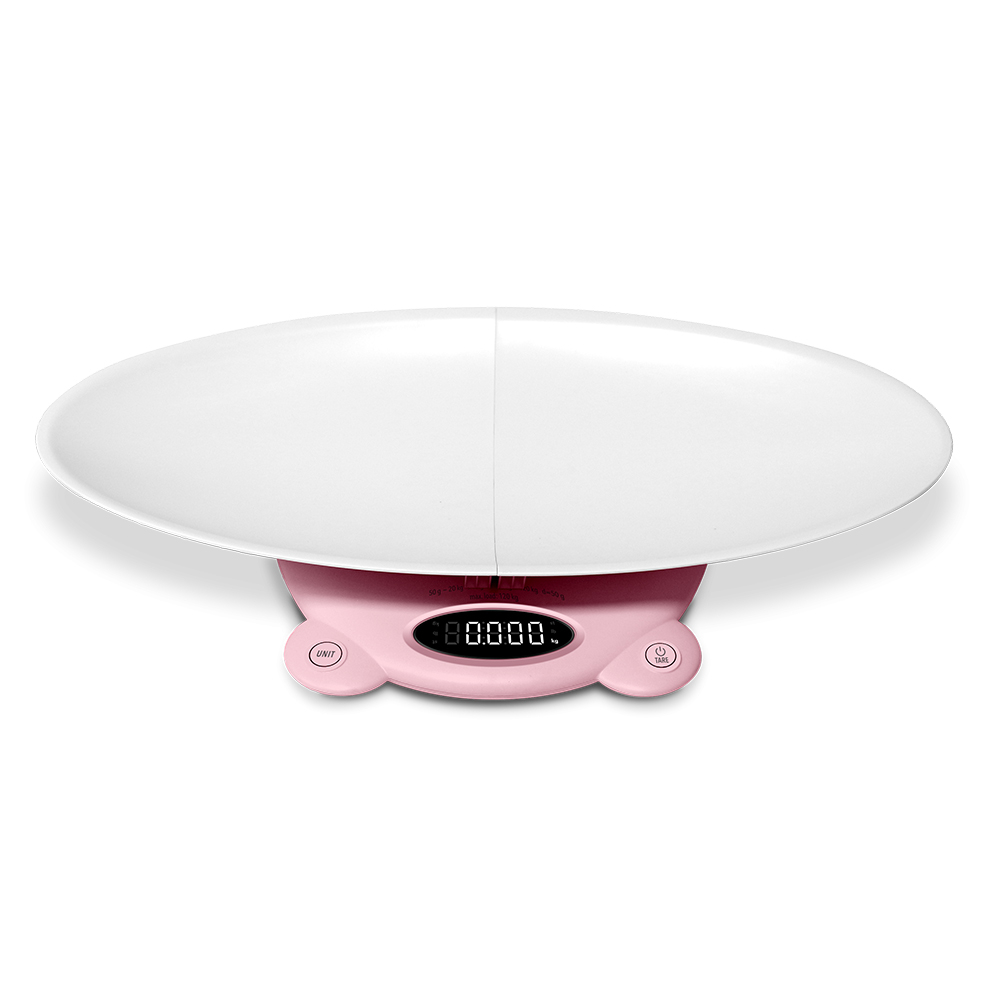 Cantar electronic Vitammy Babycinno, 4 in 1, pentru nou-nascuti, bebelusi, copii si adulti, tava detasabila, ecran LCD, greutate maxima 120 kg, Roz Greutatea nou-nascutilor si a sugarilor este un criteriu extrem de important in aprecierea dezvoltarii si sanatatii adecvate, mai ales in primele luni de viata. Cantarul electronic Vitammy Babycinno este perfect pentru cantarirea nou-nascutilor, sugarilor, copiilor si adultilor. Acesta este un produs de cea mai inalta calitate, confortabil pentru copii, usor de utilizat si sigur in timpul cantaririi. Caracteristici: - Precizie ridicata; - Tava detasabila pentru nou-nascuti si sugari; - Greutatea maxima suportata - 120 kg; - Ecran LED; - Functie de stabilizare; - Oprire automata dupa 60 secunde; - Buton schimbare unitate de masura. Componente: 1. Suprafata de cantarire; 2. Tava detasabila pentru nou-nascuti si sugari; 3. Prize de montare pentru tava detasabila; 4. Buton On Off; 5. Buton Unit; 6. Ecran LED; 7. Buton de siguranta; 8. Compartiment baterie. Avantajul cantarului electronic Vitammy Babycinno este functia de stabilizare: atunci cand copilul este intins pe cantar, acesta se va stabiliza automat si va afisa rezultatul, dupa ce cifrele vor clipi de trei ori pe ecran. Utilizeaza tava pentru a cantari nou-nascutii sau bebelusii 1. Aseaza ambele parti ale tavii in fante; 2. Aranjeaza ambele parti paralel una cu cealalta si apoi gliseaza fiecare parte in directia opusa, astfel incat sa se uneasca; 3. Asigura vasul de cantarire impotriva caderii apasand protectia de pe partea inferioara a cantarului; 4. Cand nu ai nevoie de tava de cantarire, trage de urechea din partea de jos a cantarului, departeaza ambele parti ale tavii si apoi scoate-le din fantele cantarului. Pastreaza ambele parti intr-un loc uscat. Cantarirea nou-nascutilor si a sugarilor 1. Aseaza cantarul cu tava instalata pe o suprafata tare, plana si orizontala. Nu aseza cantarul pe suprafete moi, cum ar fi covorul sau mocheta, deoarece acest lucru poate afecta rezultatul masurarii; 2. Porneste cantarul apasand butonul On Off; 3. Cand ambele zerouri si unitatea de greutate apar pe ecran, poti incepe cantarirea; 4. Daca doresti sa schimbi unitatea de masura (kg lb st) apasa butonul UNIT ; 5. Daca doresti sa rotesti continutul ecranului, apasa si mentine apasat butonul UNIT timp de aproximativ 2 secunde; 6. Pune bebelusul pe cantar. Daca nu vrei sa-ti pui copilul direct pe suprafata cantarului, pune mai intai un prosop pe cantar, apasa butonul On Off, apoi pune copilul pe cantar; 7. Opreste cantarul apasand butonul On Off, sau asteapta ca acesta sa se opreasca dupa 60 secunde. Daca doresti sa faci o alta masuratoare dupa ce ai luat copilul de pe cantar, reseteaza cantarul inainte. Pachetul contine: - Cantar Vitammy Babycinno; - Tava de cantarire pentru nou-nascuti si sugari; - Prize de sustinere pentru tava de cantarire; - Manual utilizare.,