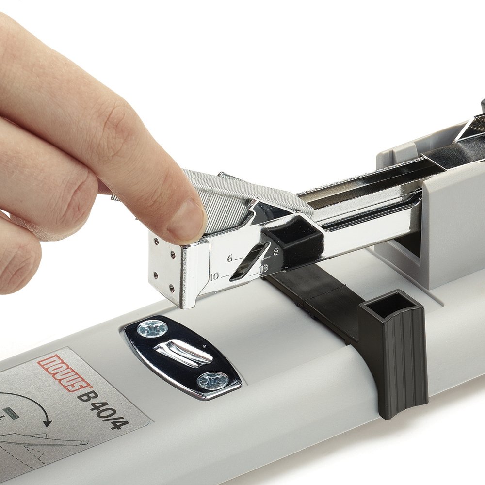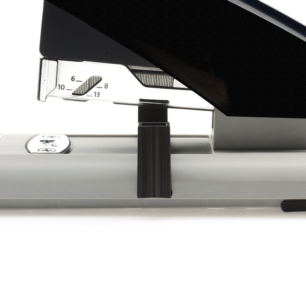 Economic si usor de utilizat. Mecanism antiblocaj ultraperformant, ghidaj dublu al capselor. Capacitate de capsare: 100 de coli. Capse utilizate: 23/6-23/13 super. Magazinaj: 100 capse. Adancime de patrundere in pagina: 55 mm.