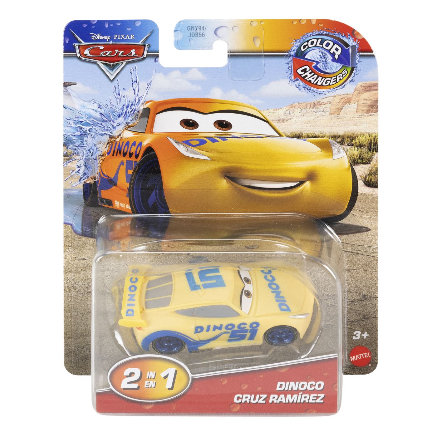 Noile masinute Cars isi schimba acum si culoarea. Scufunda masina in apa calda si vei observa cum isi schimba culoarea, iar daca o scufunzi in apa rece revine la culoarea initiala. Colectia aduce cele mai indragite 8 personaje, de la Fulger McQueen la Bobby Swift. Alege una din masinutele Cars - culori schimbatoare si castiga cursa! Masinutele sunt construite la scara 1 la 55. Acest pachet contine personajul Dinoco Cruz Ramirez.