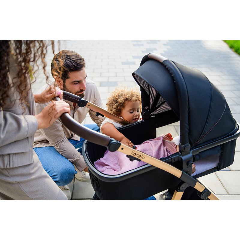 - Lionelo Amber 3 in 1 are o gama larga de accesorii, cum ar fi plasa de tantari universala si pelerina de ploaie, saculet pentru picioare, precum si saltea de infasat si o geanta practica montabila pe maner. Caruciorul este dotat si cu un cos de cumparaturi.