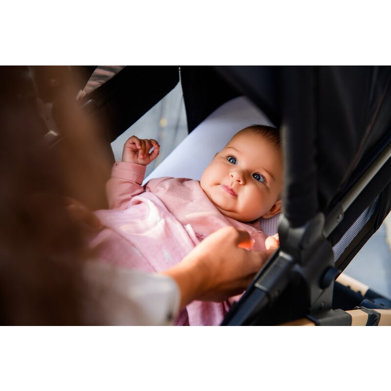 - Caruciorul este echipat cu un parasolar mare si fereastra integrata pentru o calatorie confortabila si o ventilatie perfecta. Copertina este captusita cu un material care reflecta razele UV pentru mentinerea temperaturii optime in interiorul acestuia.