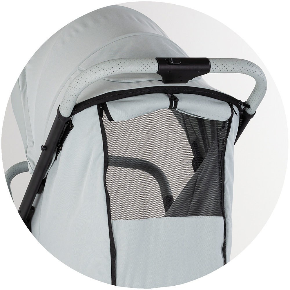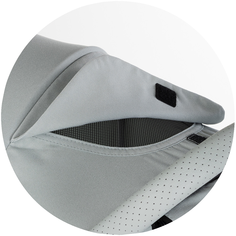- Copertina mare, reglabila si extensibila dotata cu vizor si buzunar pentru accesorii