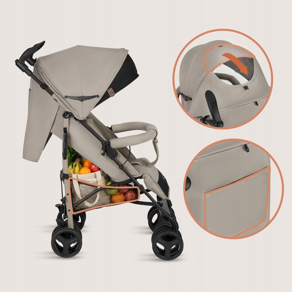 Spatarul reglabil permite ajustarea rapida a pozitiei, inclusiv pentru somn, iar suportul pentru picioare asigura o postura ergonomica. Copertina XXL protejeaza eficient de soare, vant si ploaie, iar fereastra integrata permite supravegherea copilului in permanenta.