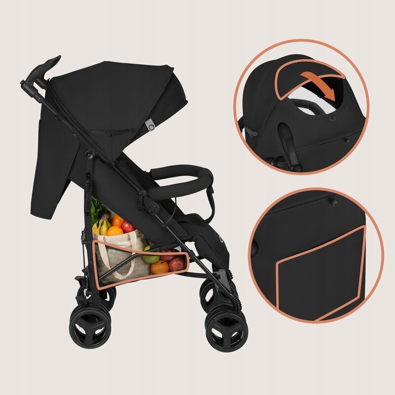 Spatarul reglabil permite ajustarea rapida a pozitiei, inclusiv pentru somn, iar suportul pentru picioare asigura o postura ergonomica. Copertina XXL protejeaza eficient de soare, vant si ploaie, iar fereastra integrata permite supravegherea copilului in permanenta.