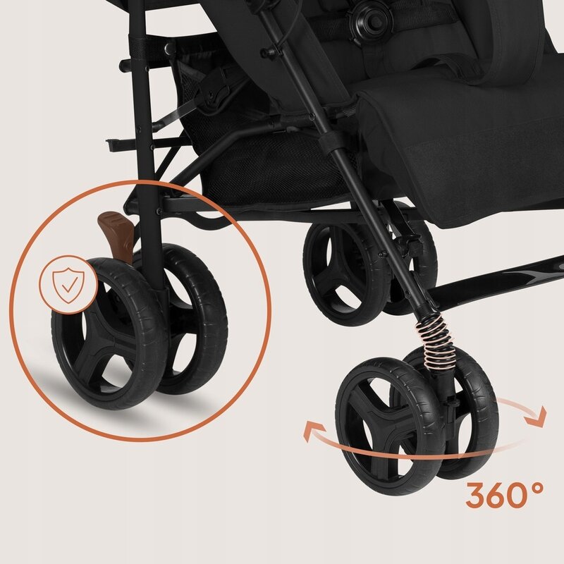 Manerele pivotante la 360° si rotile fata mobile asigura control precis si manevrare usoara chiar si in spatii aglomerate. Suspensiile pe toate rotile reduc vibratiile, oferind o plimbare lina pe diferite tipuri de teren.