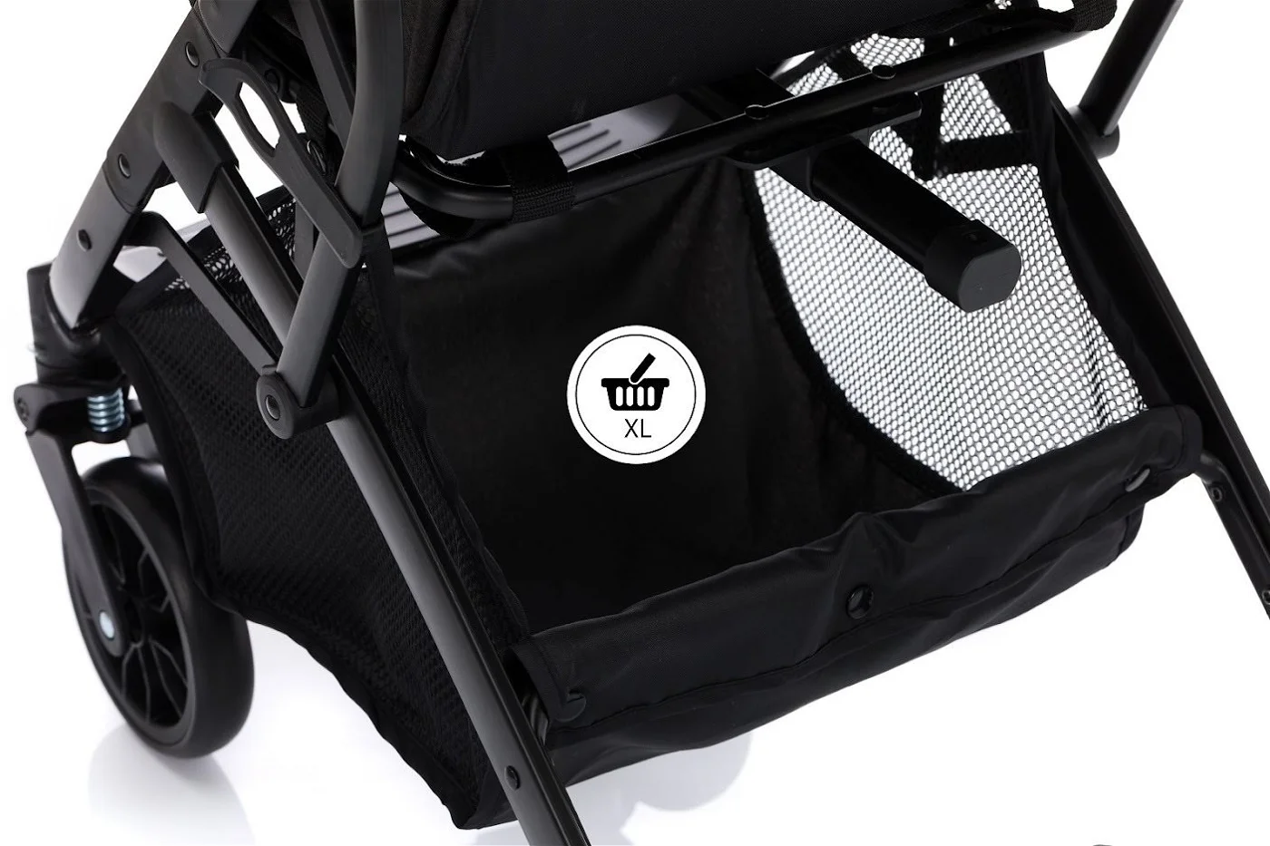 Datorită dimensiunilor mici de pliere, se potrivește în orice mașină și, de asemenea, ocupă aproape deloc spațiu acasă, mai ales atunci când este pliată. Când mergi la cumpărături, vei fi mulțumit de coșul mare. Ca un plus special, are un maner de carucior extensibil cu care poti trage cu usurinta caruciorul in spate atunci cand este pliat, daca micutul tau drag vrea sa mearga cativa metri singur.