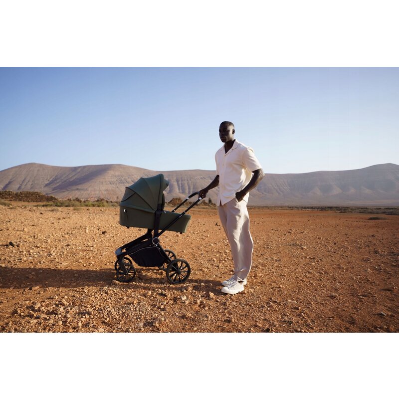 Husa caruciorului, fabricata cu un continut ridicat de elastan, ramane neteda si fara cute, in timp ce materialul premium asigura o durabilitate de lunga durata, chiar si in conditii meteorologice dure. Hamul este echipat cu o catarama magnetica speciala pentru o fixare usoara.