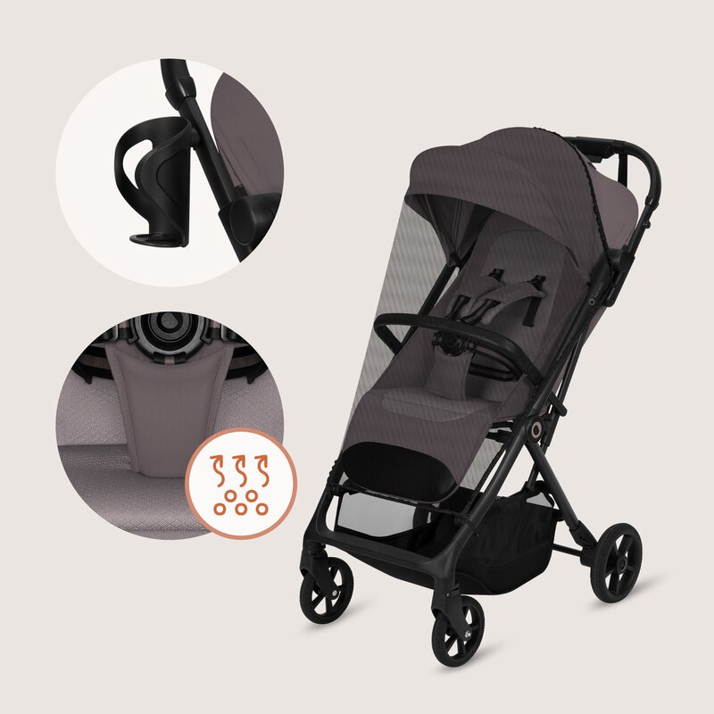 Lionelo Tansi vine cu accesorii practice pentru utilizarea zilnica. Plasa anti-insecte protejeaza copilul in timpul plimbarilor de vara, iar suportul pentru pahar adauga un plus de confort pentru parinti.