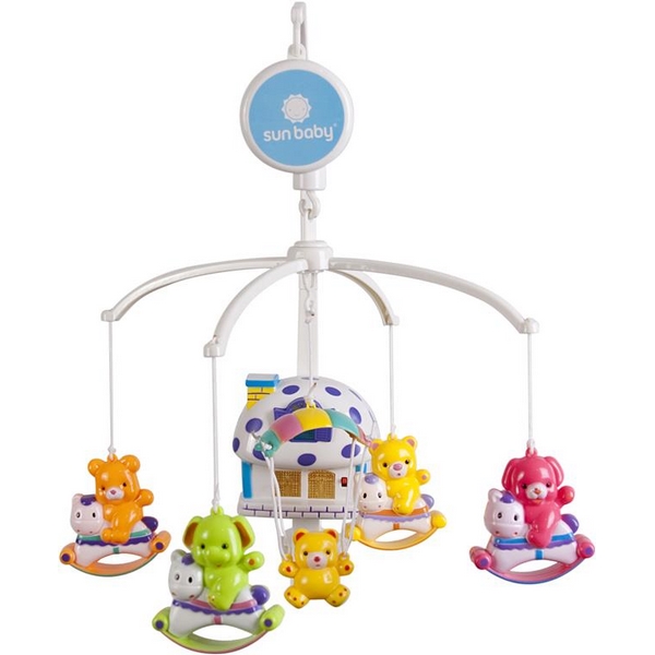 Caruselul are incluse 5 jucarii care reprezinta figurine animale, frumos colorate.