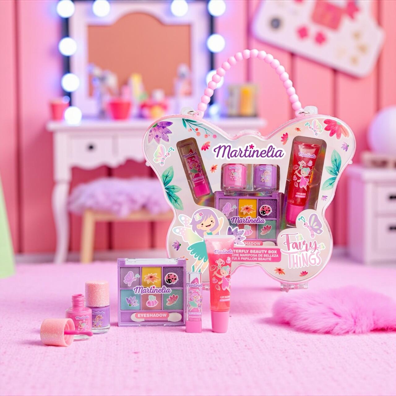 Lasă-te purtată în lumea fermecată a zânelor cu caseta de machiaj Martinelia Fairy Things – Butterfly Beauty Box!Un set adorabil, plin de culoare și strălucire, conceput special pentru micile visătoare care iubesc magia, creativitatea și joaca frumoasă. Într-un ambalaj spectaculos, în formă de fluture, se ascunde un univers de produse de frumusețe sigure și distractive, perfecte pentru primele experiențe de machiaj.