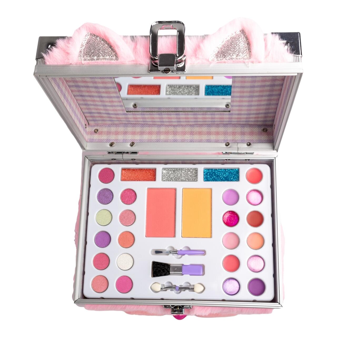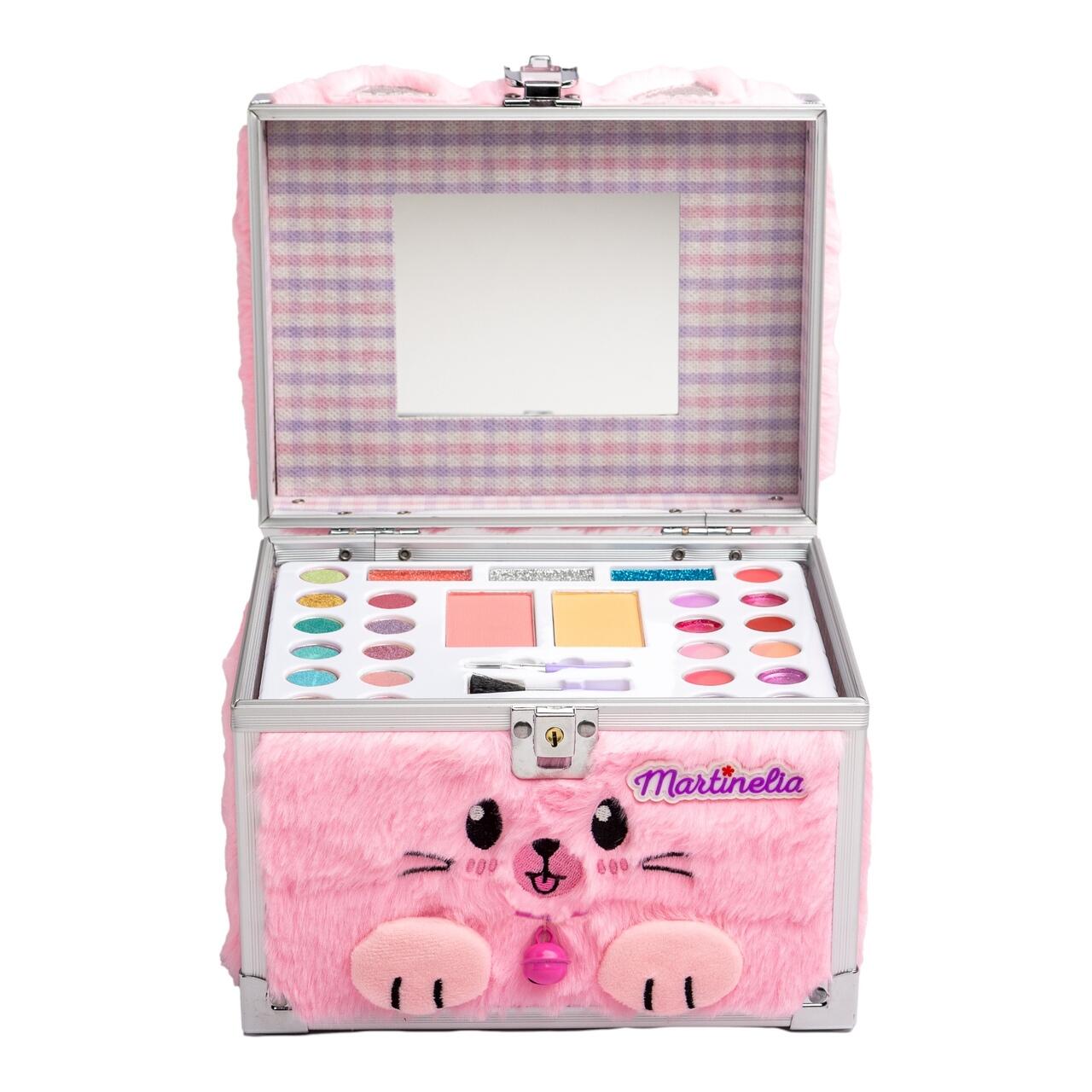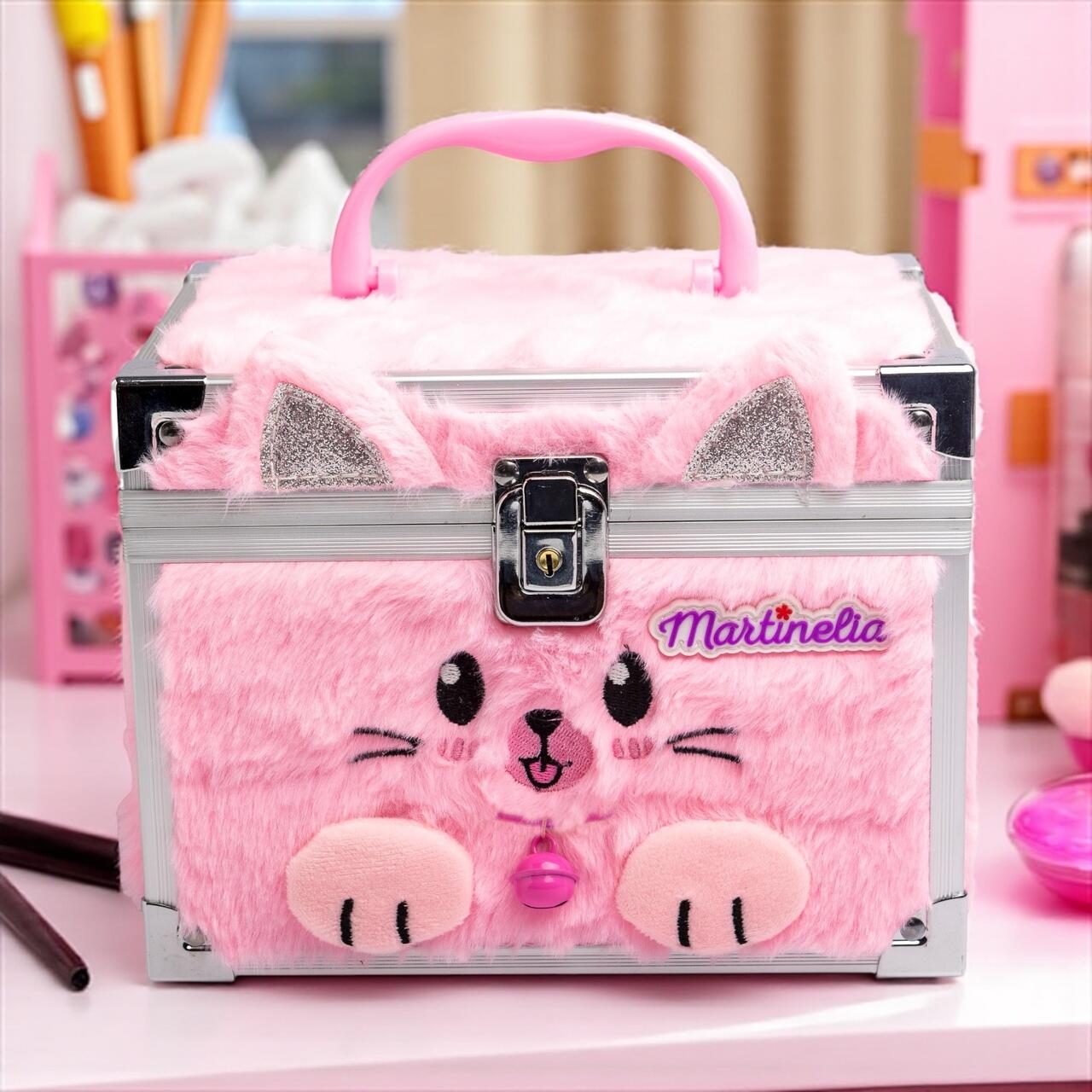 Transformă fiecare zi într-o aventură plină de culoare și sclipici cu Caseta de machiaj tip cufăr Lulu & Duki de la Martinelia! ???????? Inspirată de simpaticele mascote ale colecției, această trusă adorabilă în formă de pisicuță îmbină farmecul și distracția într-un design moale, pufos și fermecător. Perfectă pentru micile artiste care iubesc machiajul și jocurile de imaginație, caseta conține tot ce au nevoie pentru a crea look-uri magice și colorate.