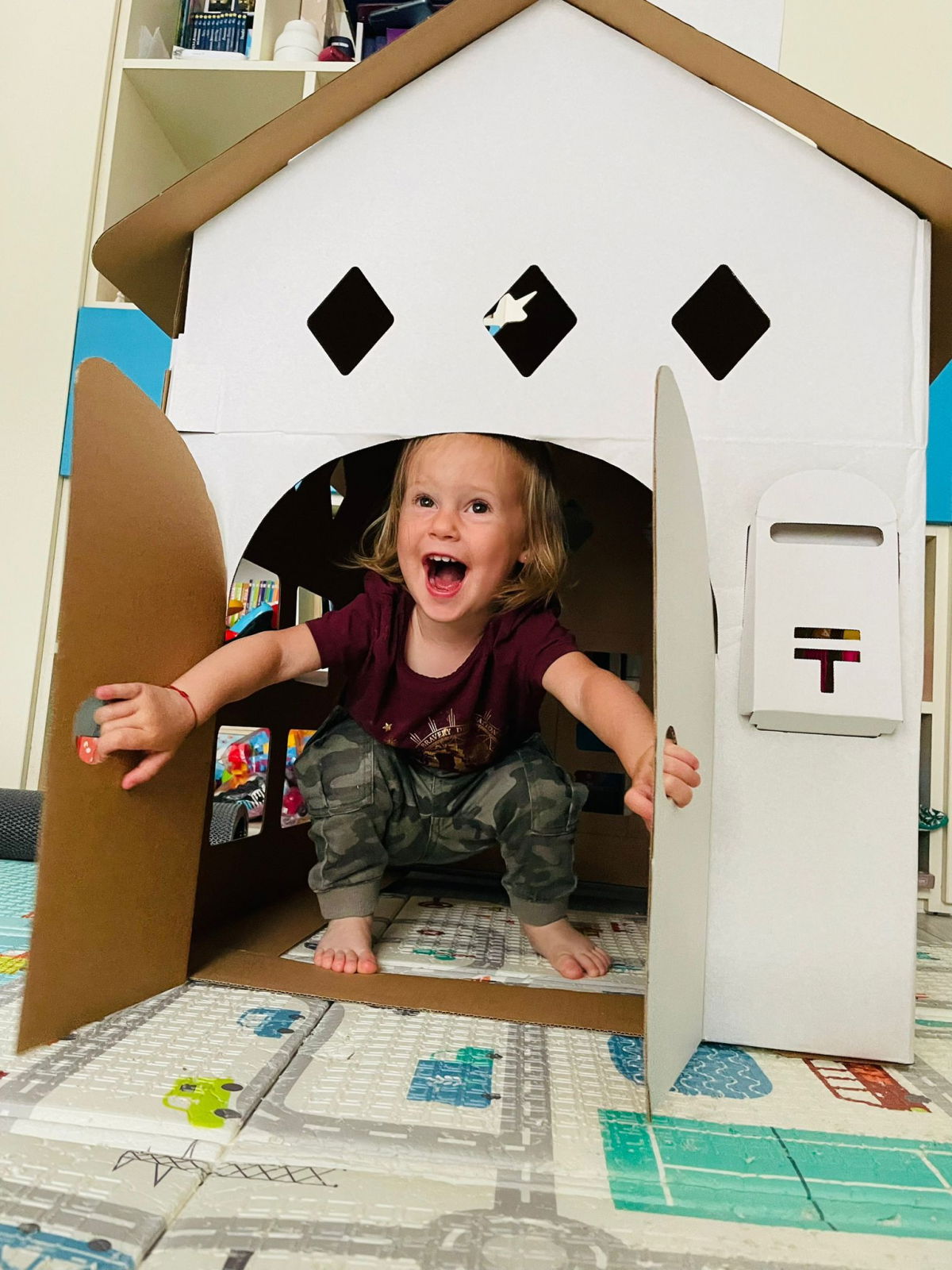 Casuta de colorat , cu accesorii si joaca educativa! Culoare, constructie si joaca , toate intr-un singur produs! Casuta din carton de colorat este mai mult decat o jucarie: este o aventura creativa in miniatura! Copiii o pot construi, colora si personaliza , apoi o pot transforma intr-un loc magic de joaca. Un joc de rol distractiv, care stimuleaza imaginatia, motricitatea si cooperarea ! Ce problema rezolva? Copiii se plictisesc repede, iar parintii raman cu pereti mazgaliti si jucarii aruncate? Casuta de colorat aduce o solutie ideala: spatiu de creativitate sigur, curat si captivant! Casute pentru copii - Beneficii care conteaza: Asamblare usoara prin pliere , fara lipici sau unelte Colturi rotunjite protejate , fara riscuri pentru cei mici Decorare creativa cu creioane, carioci, acuarele, autocolante Joaca de rol , copiii pot , žlocui, , , žvinde, sau , žinvita prieteni, Activitate in familie , colorat, construit si ras impreuna Perfecta pentru interior si exterior , gradina, camera, afterschool Ce contine pachetul? 1 x casuta din carton alb, predecupata, usor de montat Banda de protectie moale pentru margini , siguranta sporita Instructiuni intuitive, pas cu pas Specificatii tehnice Caracteristica Detalii Dimensiuni montata 887, L Ãmdash; 830, l Ãmdash; 740, h mm Material Carton alb durabil Recomandat pentru Copii 3+ ani Timp de asamblare Sub 30 minute (doar pliere) Timp de joaca Zile intregi de distractie! Recenzii de la parinti bucurosi , žCasuta asta e un hit la noi in casa! Fetita mea de 5 ani a stat 3 ore sa coloreze fiecare perete. Noi am ajutat cu usile si ferestrele. Foarte faina!, , Ana, Bucuresti , žO activitate in care a fost implicata toata familia. A iesit superb! O recomand tuturor parintilor., , Radu, Cluj Comanda ACUM si creeaza o lume de poveste in camera copilului! Stoc limitat , adauga in cos inainte sa se epuizeze! Ideala pentru zile de nastere, gradinite, afterschool, vacante si weekenduri creative!