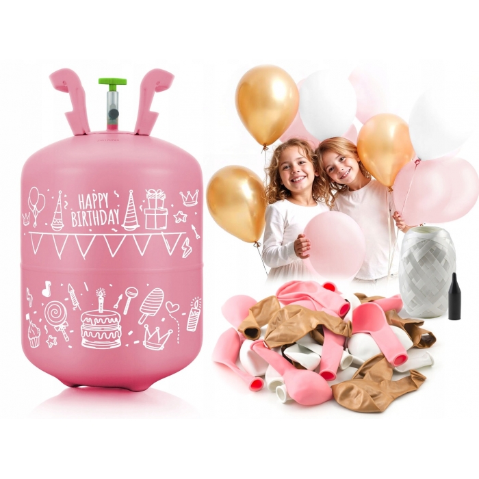 Cilindrul este suficient pentru a umple aproximativ 30 de baloane cu un diametru de aproximativ 23 cm.