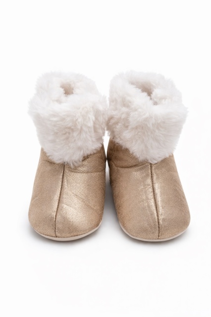 Acest produs Cizmulite bebelusi aurii cu blanita, interior calduros, talpa moale este model TRPB0003