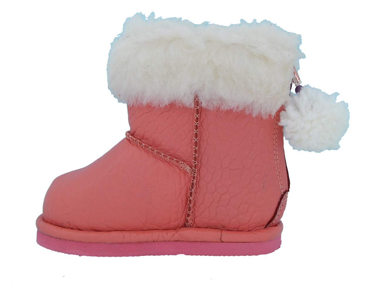 Cizmulite piele, Erika, imblanite, pentru fete (Culoare nappa: Roz, Marime: 23, Decor: Pon-Pon)
