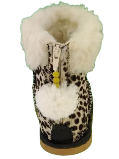 Cizmulitele imblanite, Erika, pentru fetite, sunt calduroase si potrivite pentru sezonul rece (chiar friguros). Sunt confectionate din piele naturala atent selectionata, tabacita fara compusi chimici nocivi (low chrom). Interiorul (captuseala si brantul) sunt din blanita import Italia. Partea din spate a ghetei este intarita cu un "staif" ferm care mentine piciorul in pozitie corecta. Carambii inalti, permit fixarea cizmei pe glezna, impiedicand rasucirea piciorului si luxarea gleznei in timpul mersului. Inchiderea la spate, cu fermoar, decorat cu pon-pon. Talpa din microporos (EVA) asigura o buna izolare a piciorului fata de sol si deci un confort termic sporit.